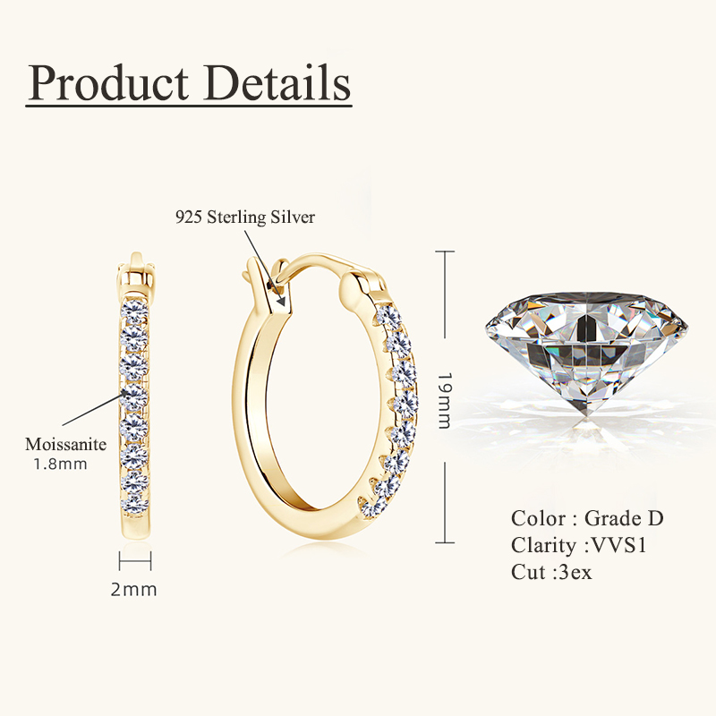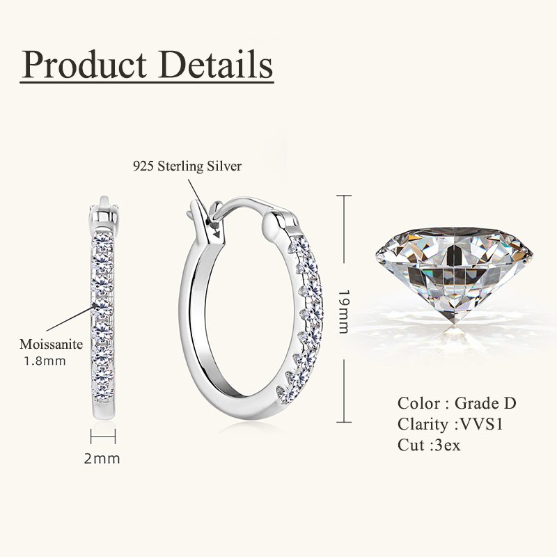 The moissanite hoop earrings are crafted in 925 sterling silver 14K white gold plated with fine jewelry craft.