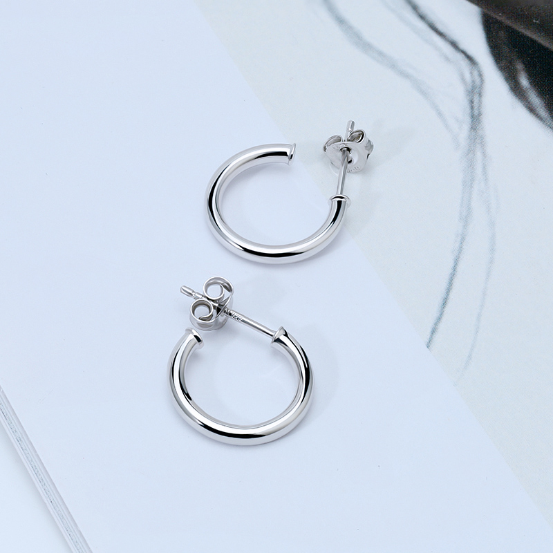 The 15mm Small Silver Tube Hoop Earrings are crafted in 925 sterling silver gold plated with fine jewelry craft.