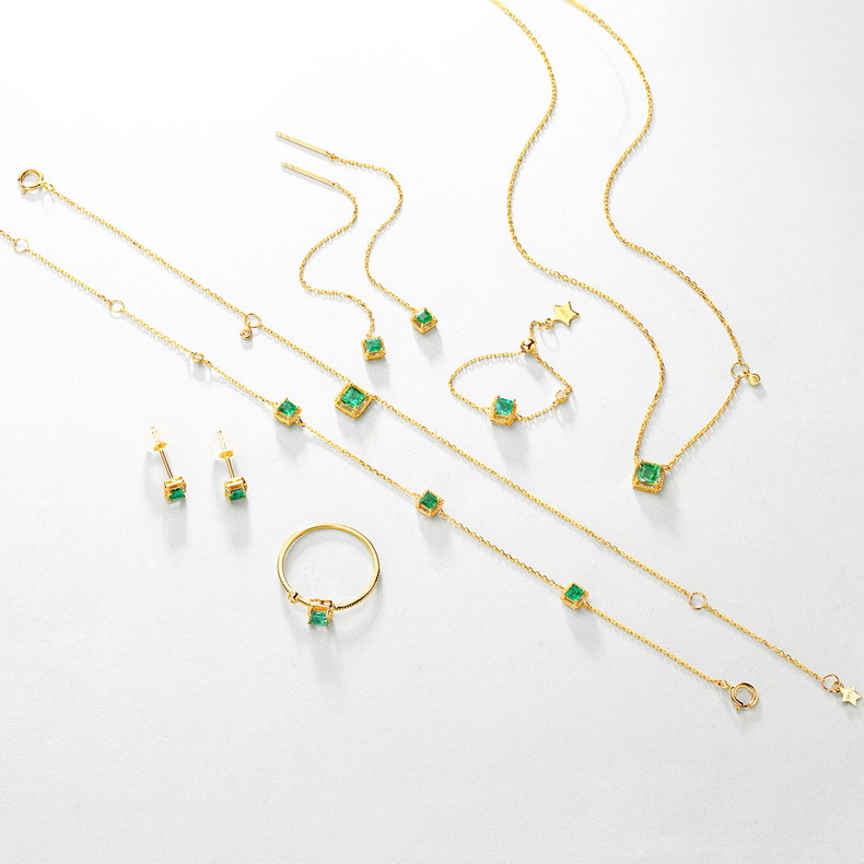 This Women Jewelry Necklace is design with princess cut emerald, 18K yellow gold plated 925 sterling silver with environment protection without nickle.