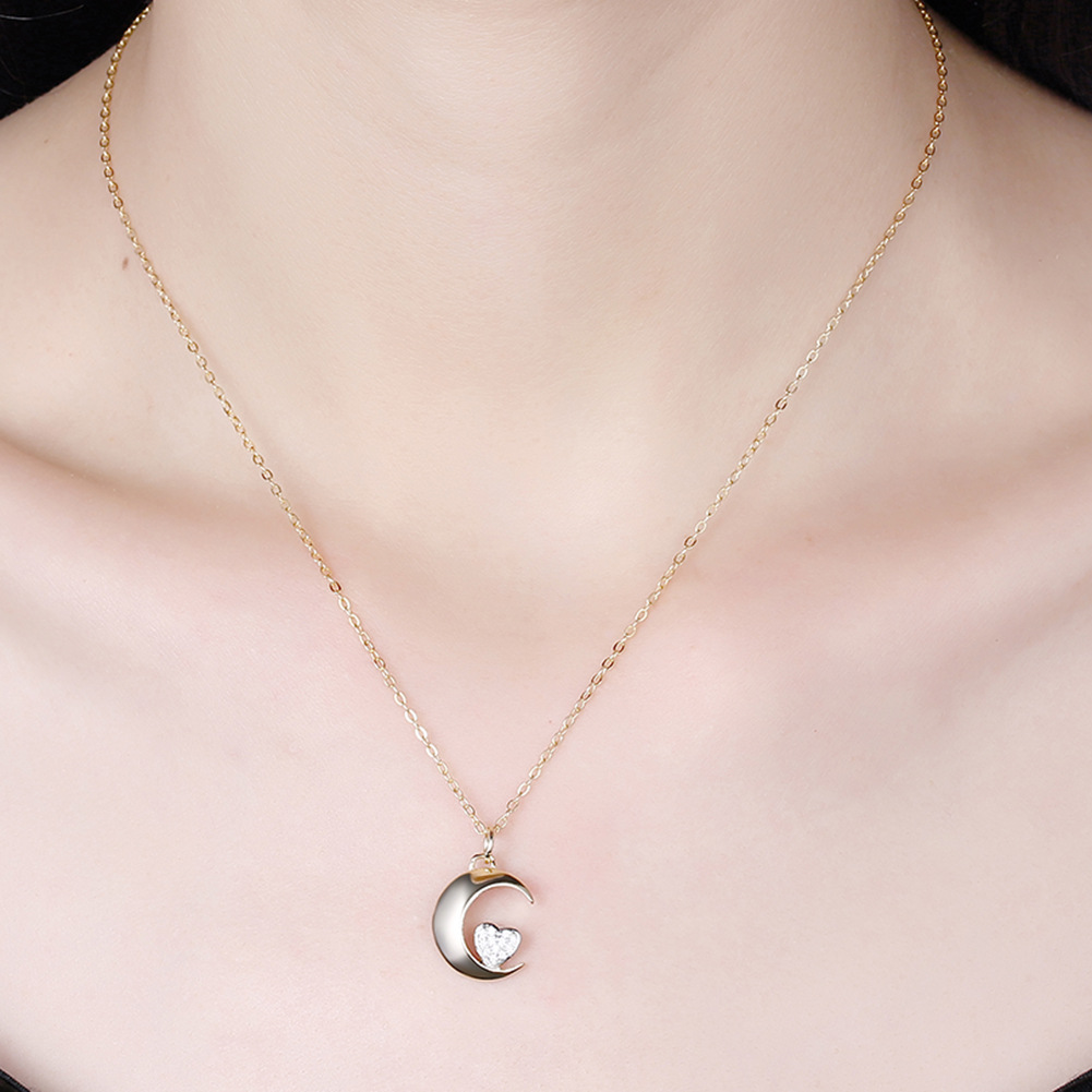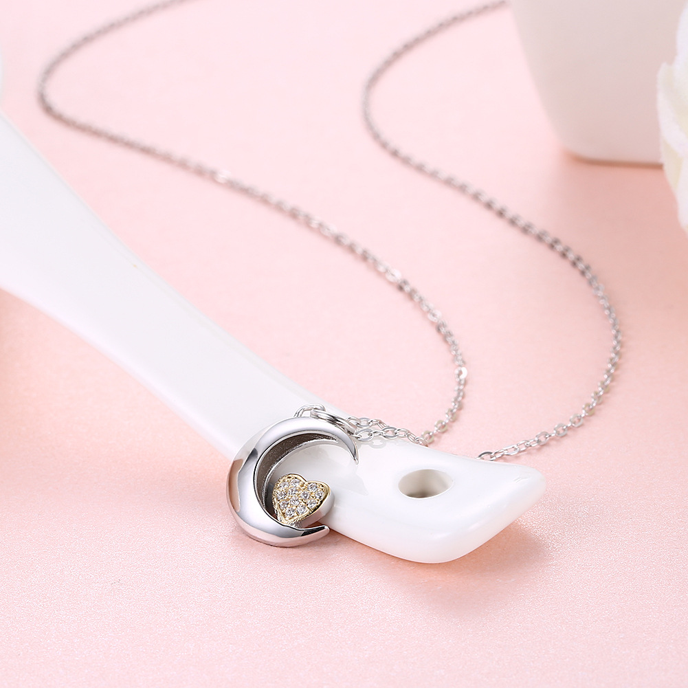S925 sterling silver necklace pendant with stylish moon and star design and setting with AAA CZ zircon stones. More individuality and more beautiful.