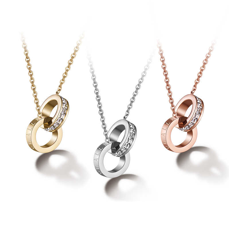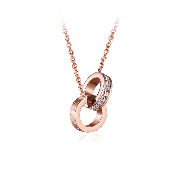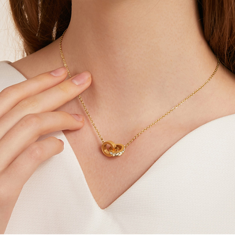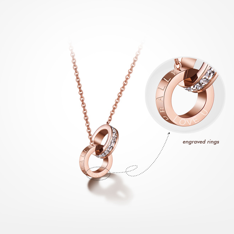 This double circle necklace supports engraving on the circle. |