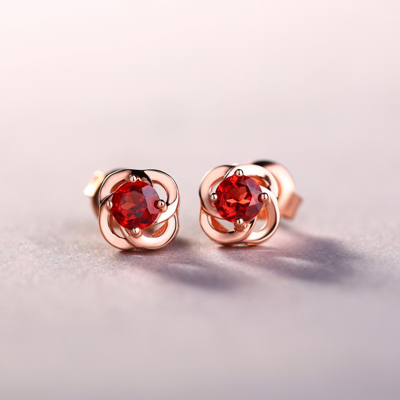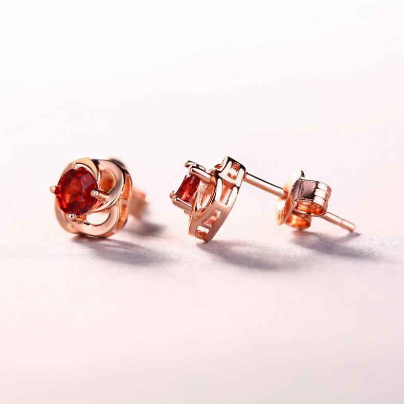 The 925 Silver Earrings fine jewelry is made of sterling silver in 18K rose gold plating and prong setting with 4*4mm round ruby .