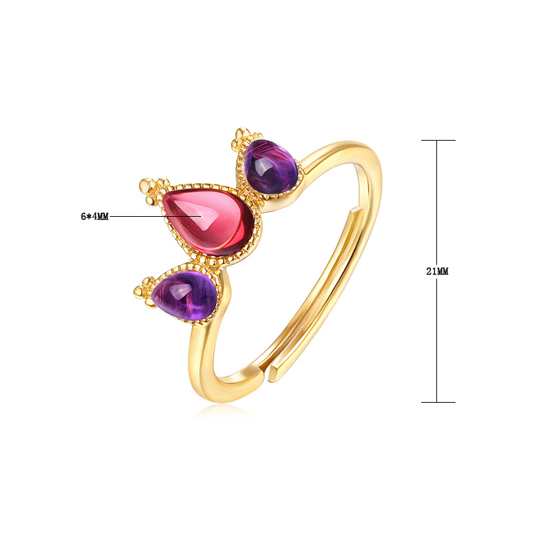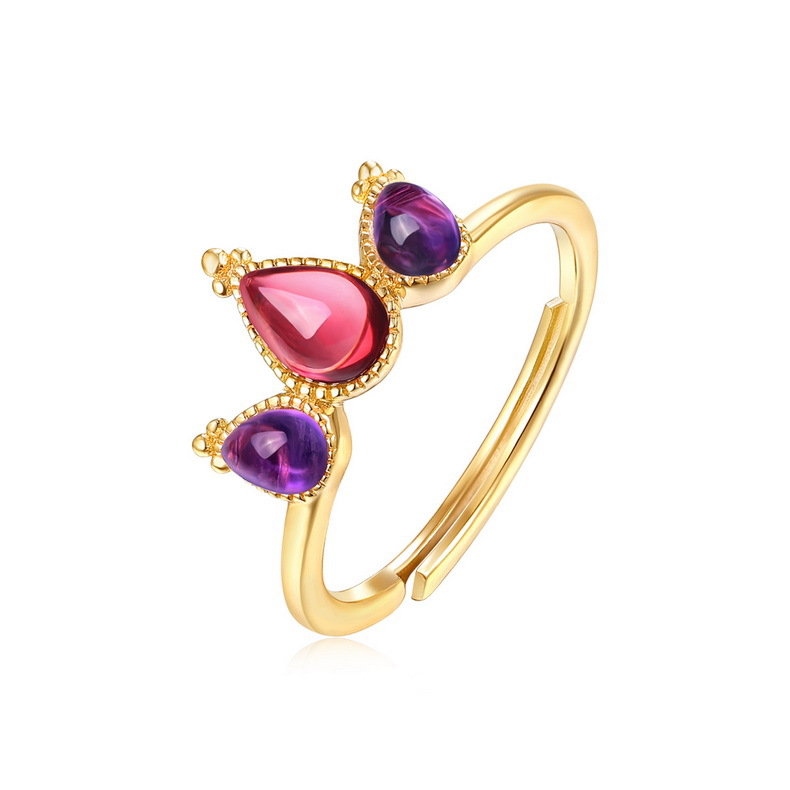 The 18K gold ring is made of sterling silver and setting with amethyst.
