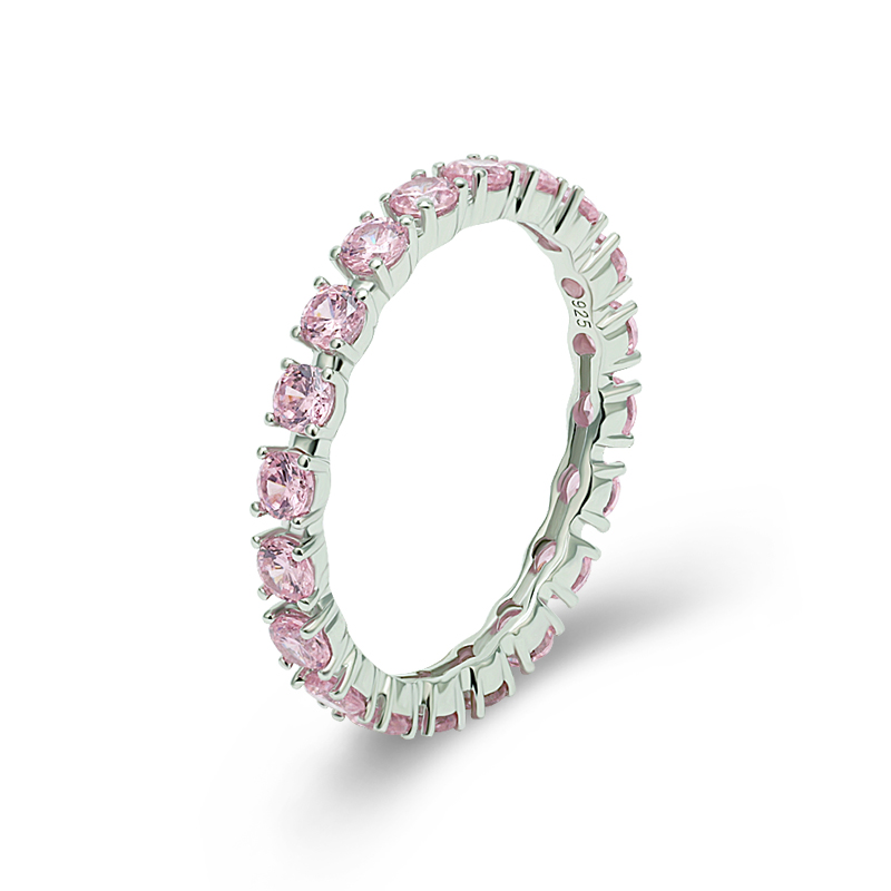 2.5mm Round Cut Tennis Ring White Gold Plated Pink Zircon