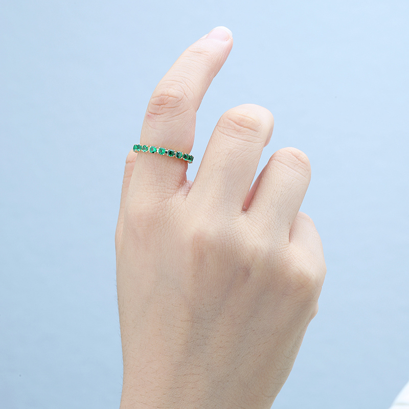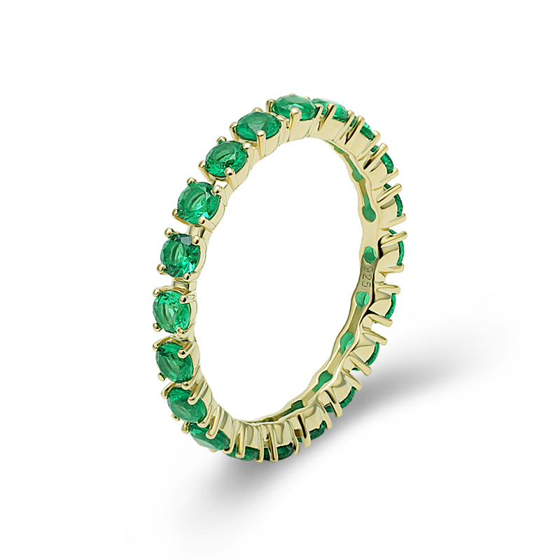 2.5mm Round Cut Tennis Ring Yellow Gold Plated Simulated Emerald