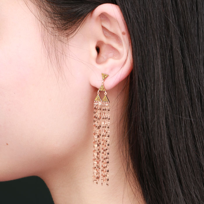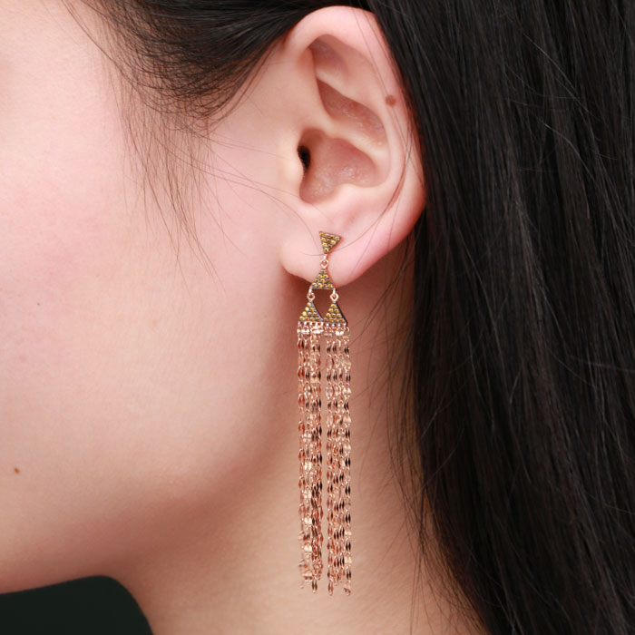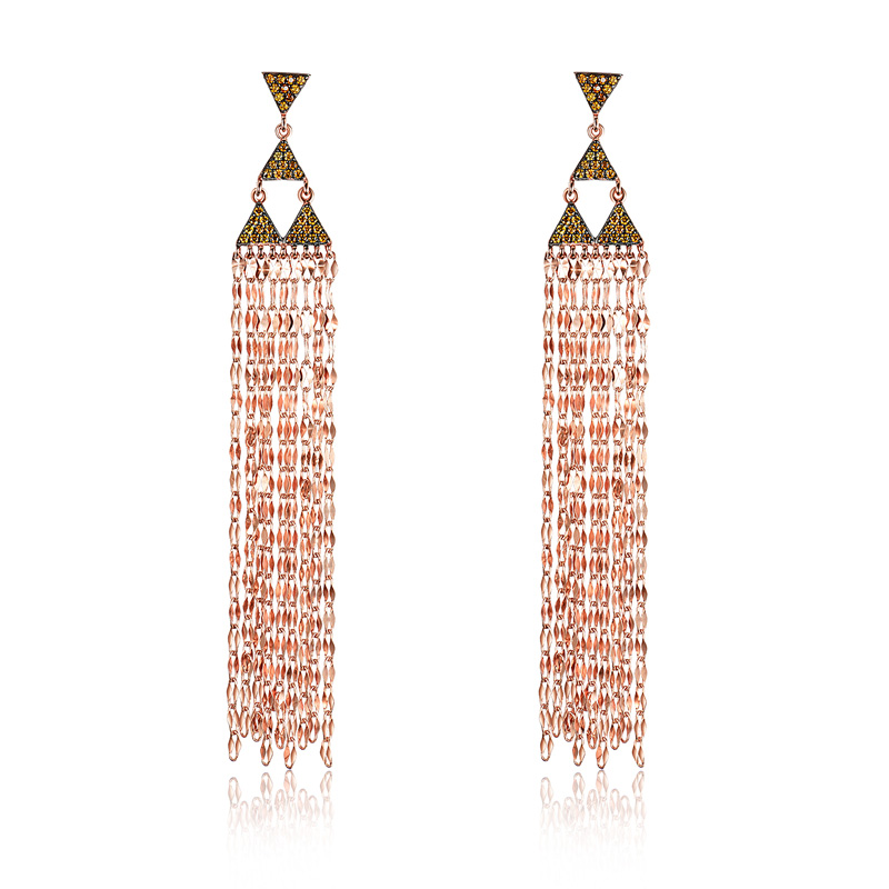 YesThe linear drop earring combine geometric shapes and tassel elements to create a vintage tassel charm and a trendy and stylish look.