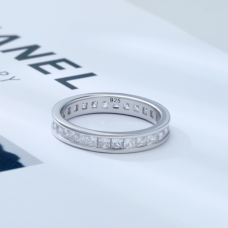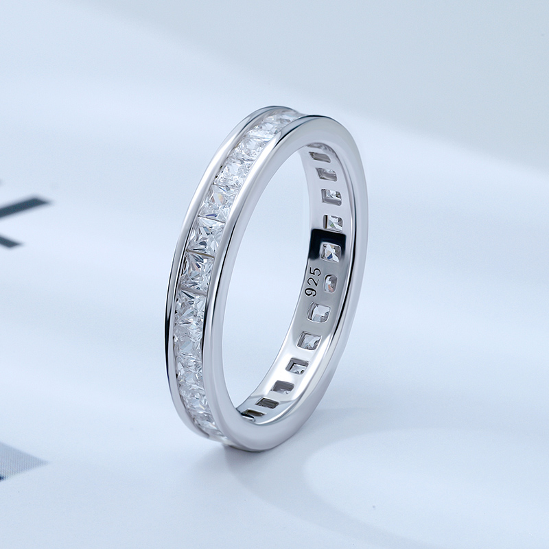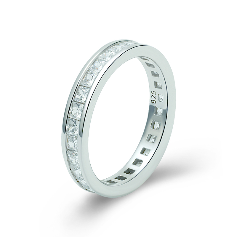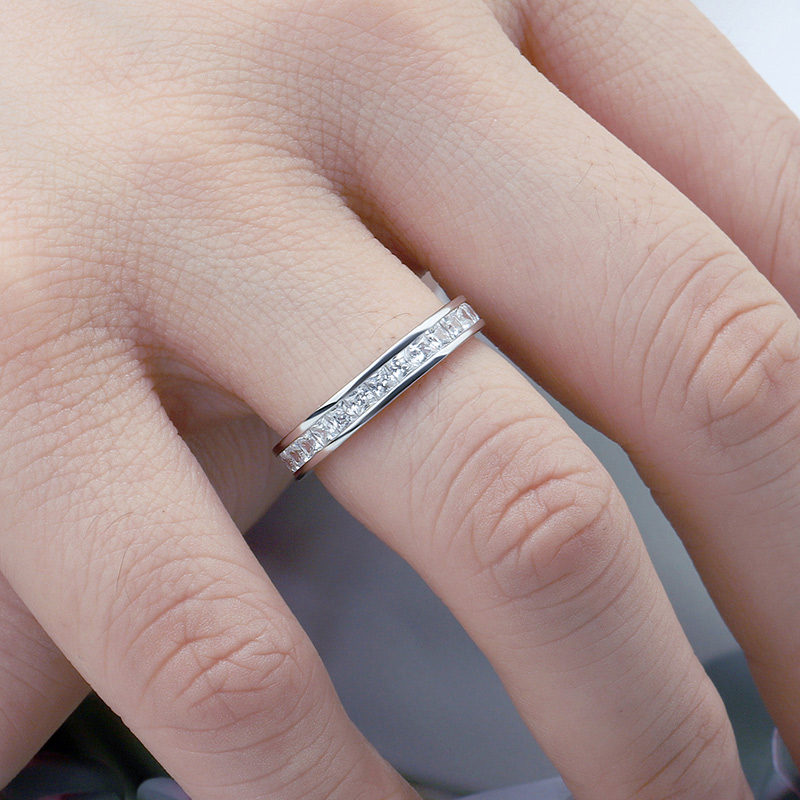 2mm Princess Cut Tennis Band Ring White Gold Plated