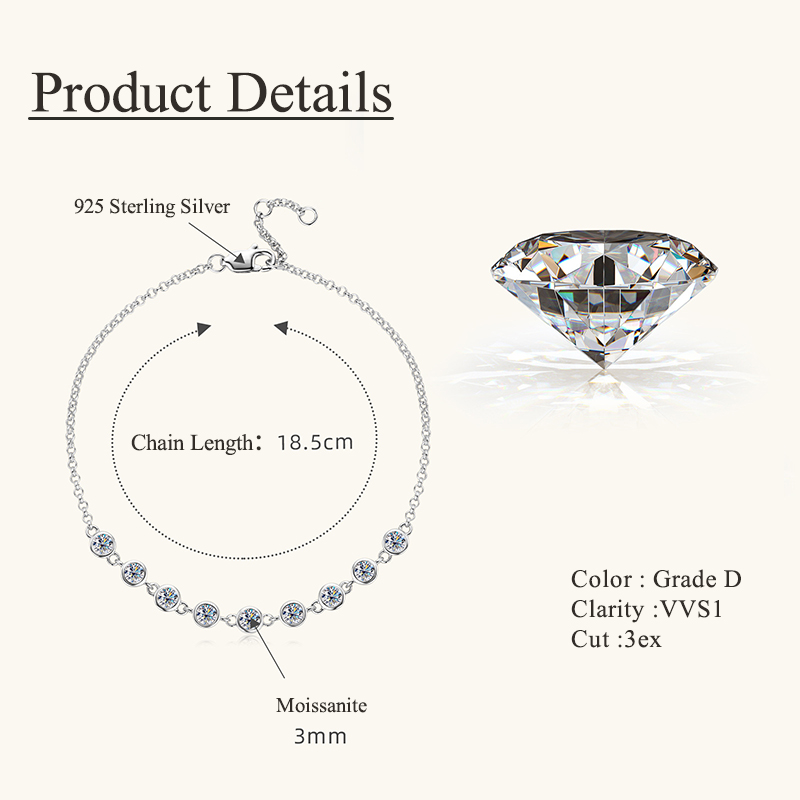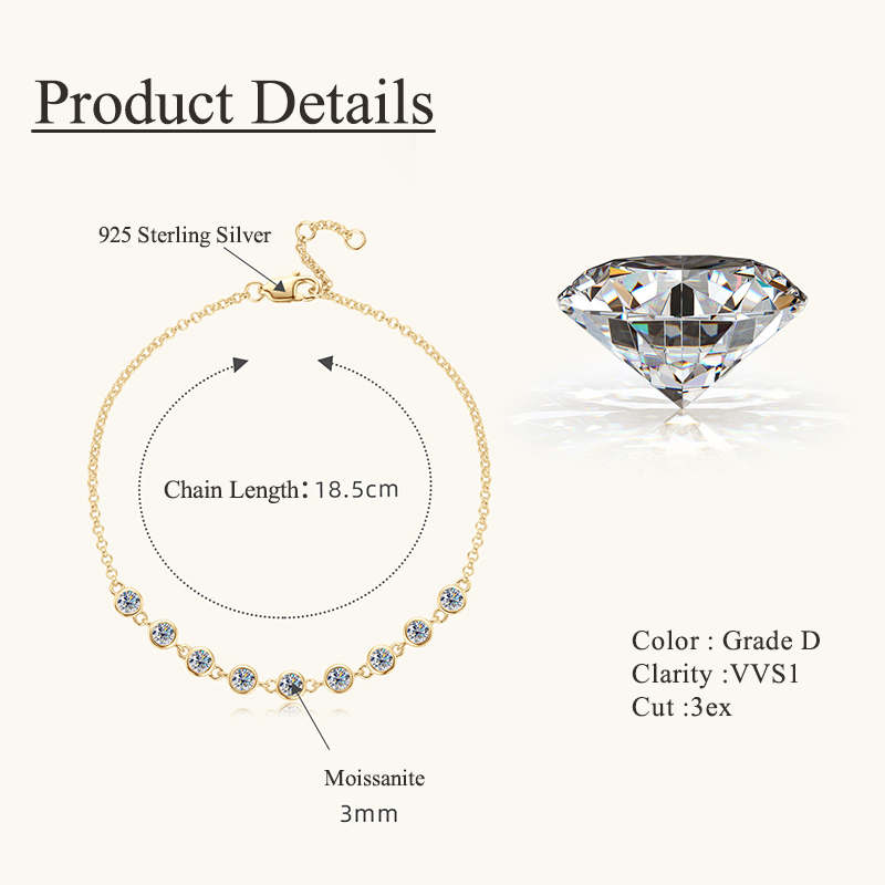 The women moissanite bracelet is crafted in 925 sterling silver 14K gold plated with fine jewelry craft.