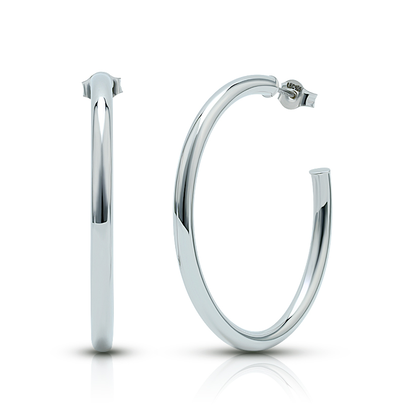 The 40mm Oversized Silver Tube Hoop Earrings are crafted in 925 sterling silver gold plated with fine jewelry craft.