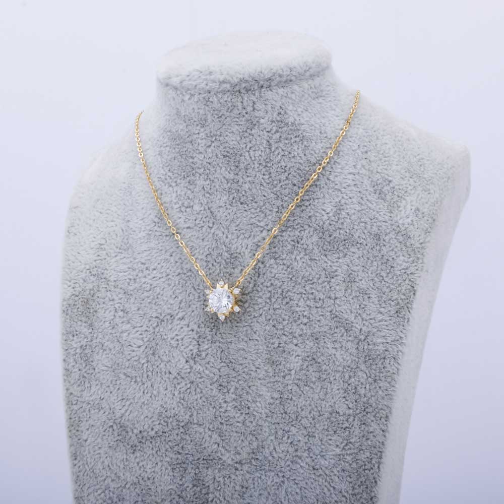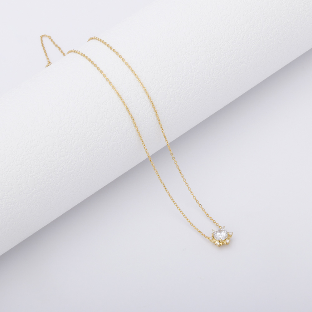 The zircon stone necklace is crafted in 925 sterling silver, 14k/18k/22k/24k gold plated. It is in high quality polishing and plating. We offer custom service for it.