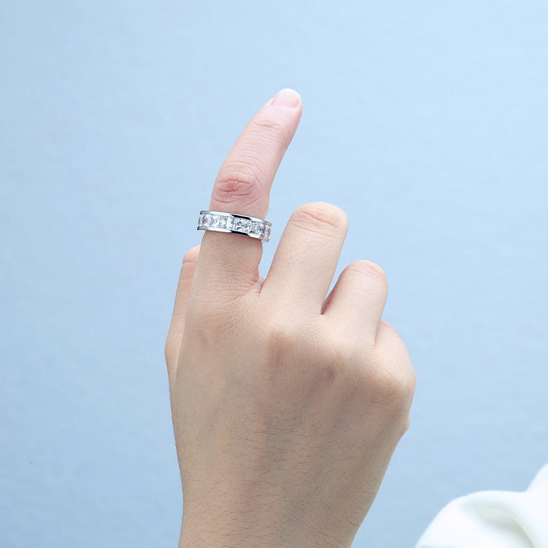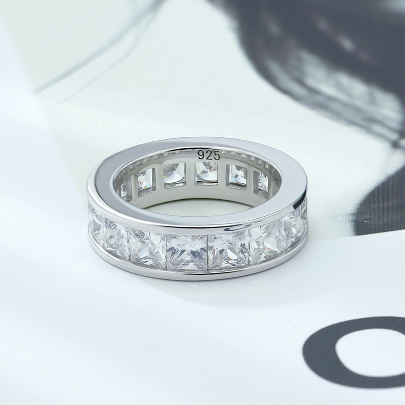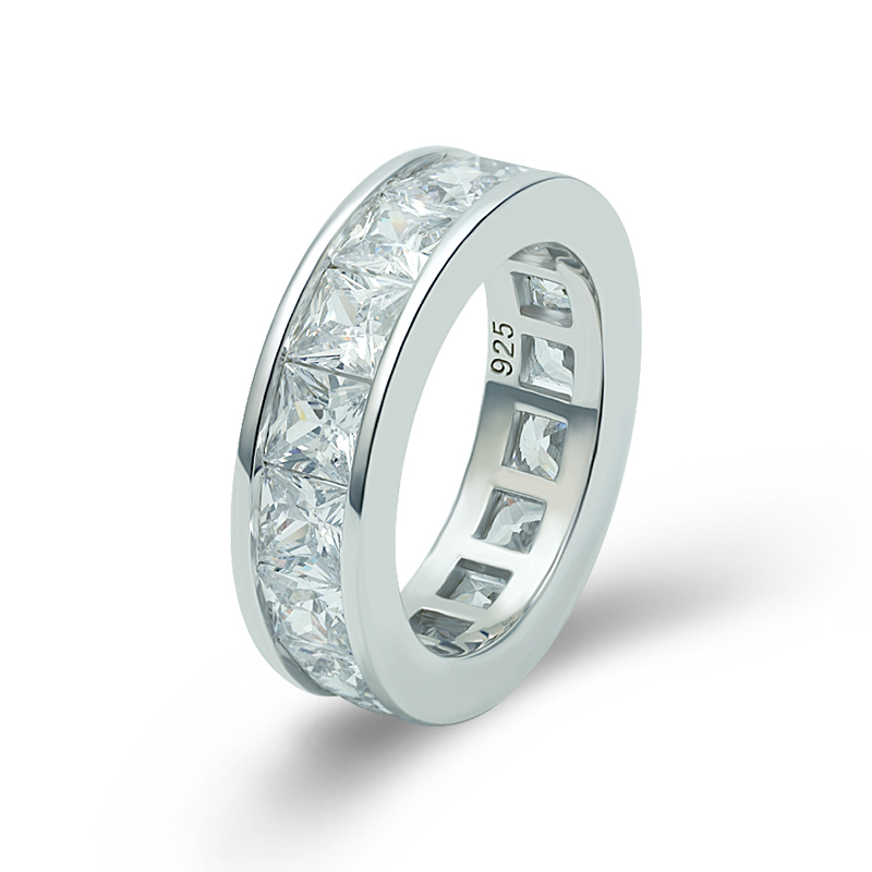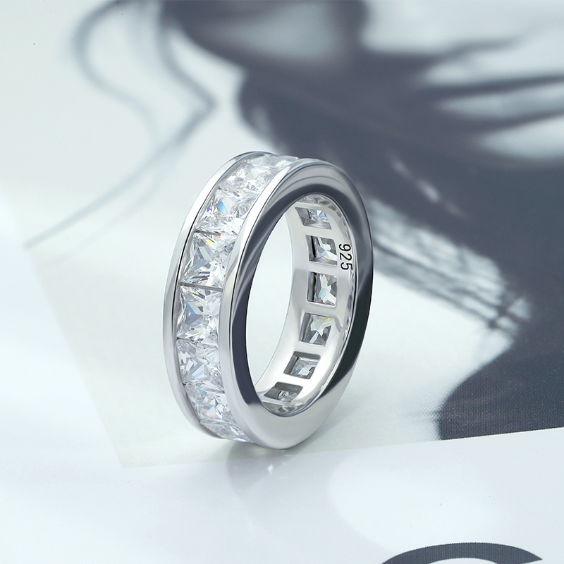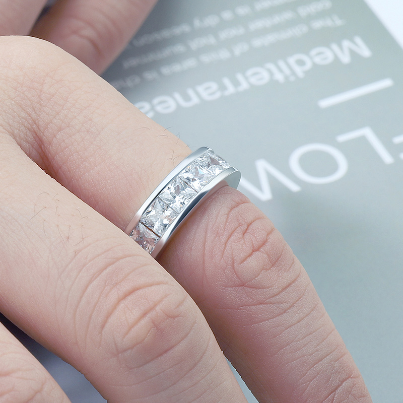 4mm Princess Cut Tennis Band Ring White Gold Plated