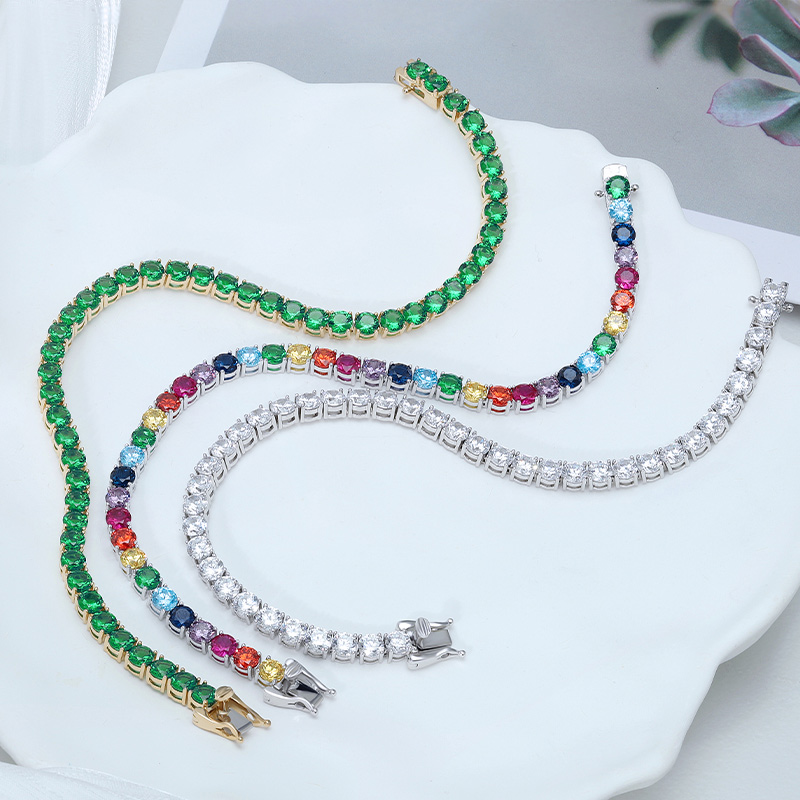 The 4mm Tennis Bracelet Round Cut Zircon is crafted in 925 sterling silver gold plated with fine jewelry craft.