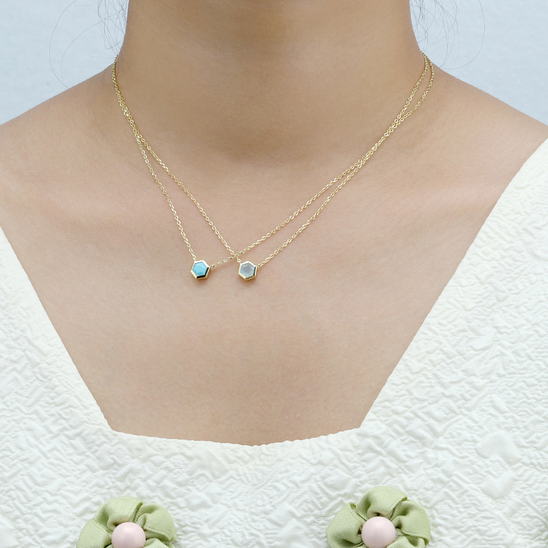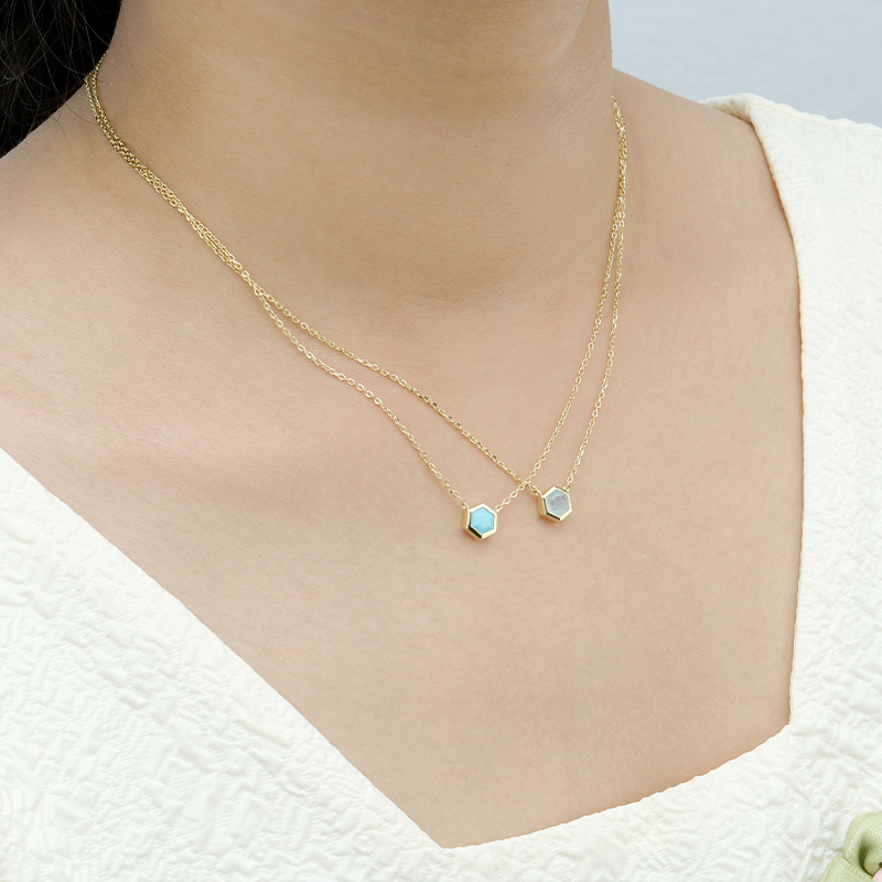 The Aquamarine Hexagon Pendant Necklace is crafted in 925 sterling silver gold plated with fine jewelry craft.