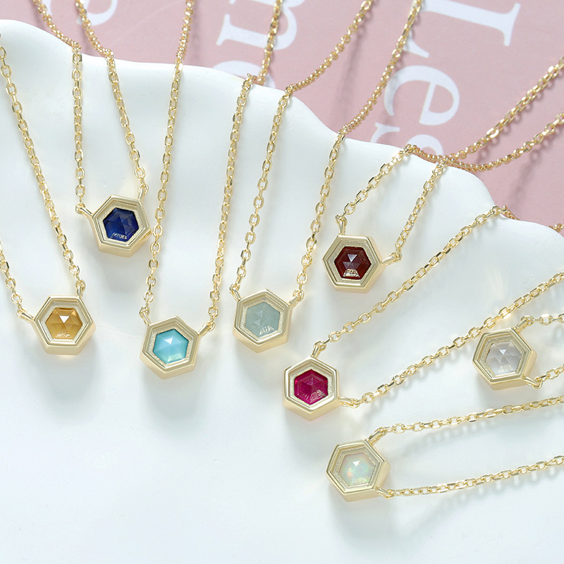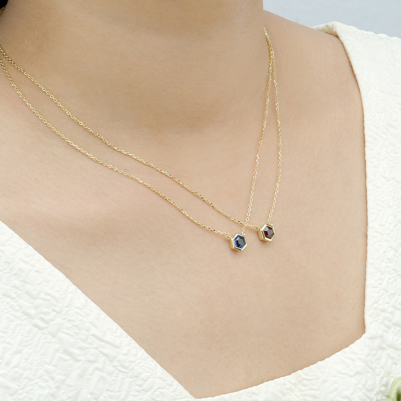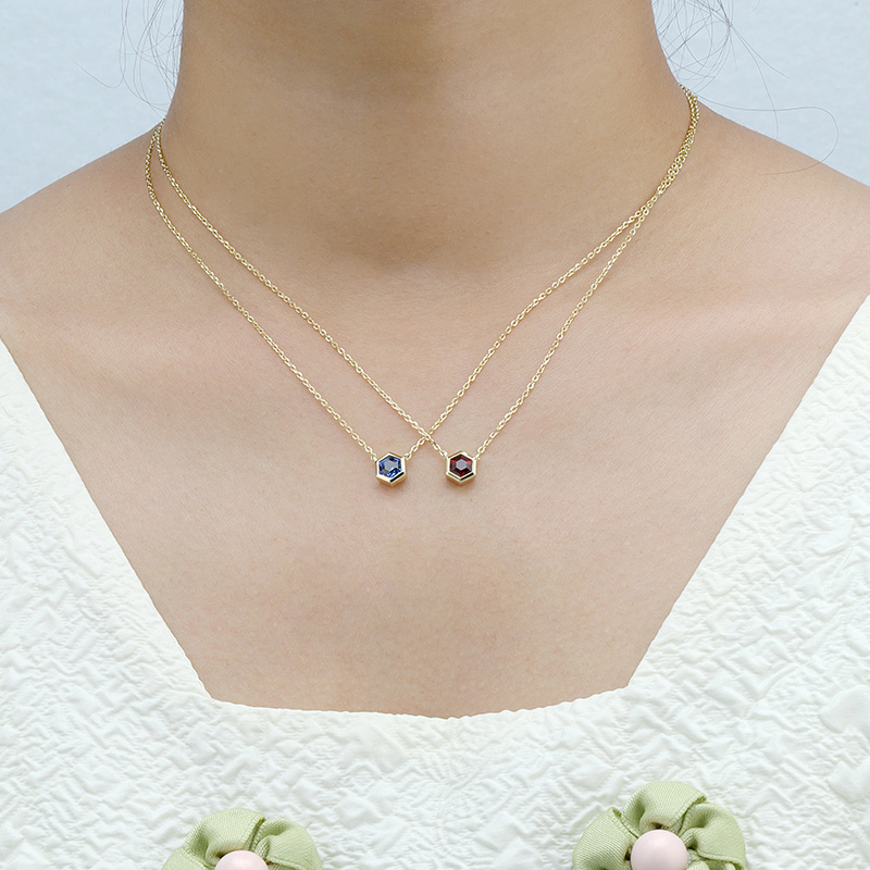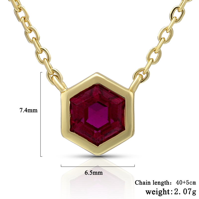 The Garnet Hexagon Pendant Necklace is crafted in 925 sterling silver gold plated with fine jewelry craft.