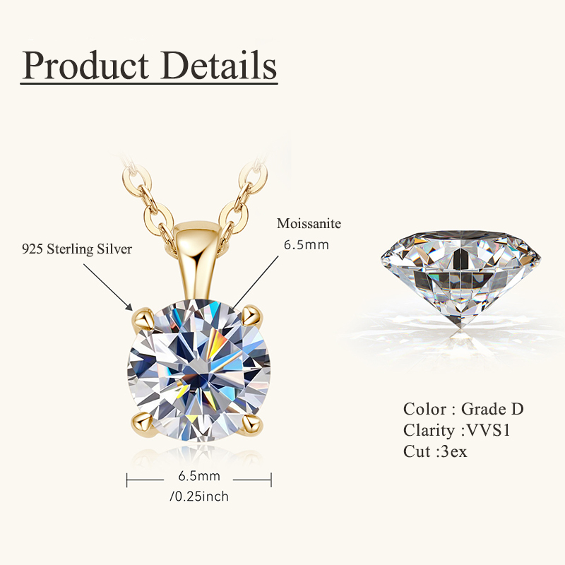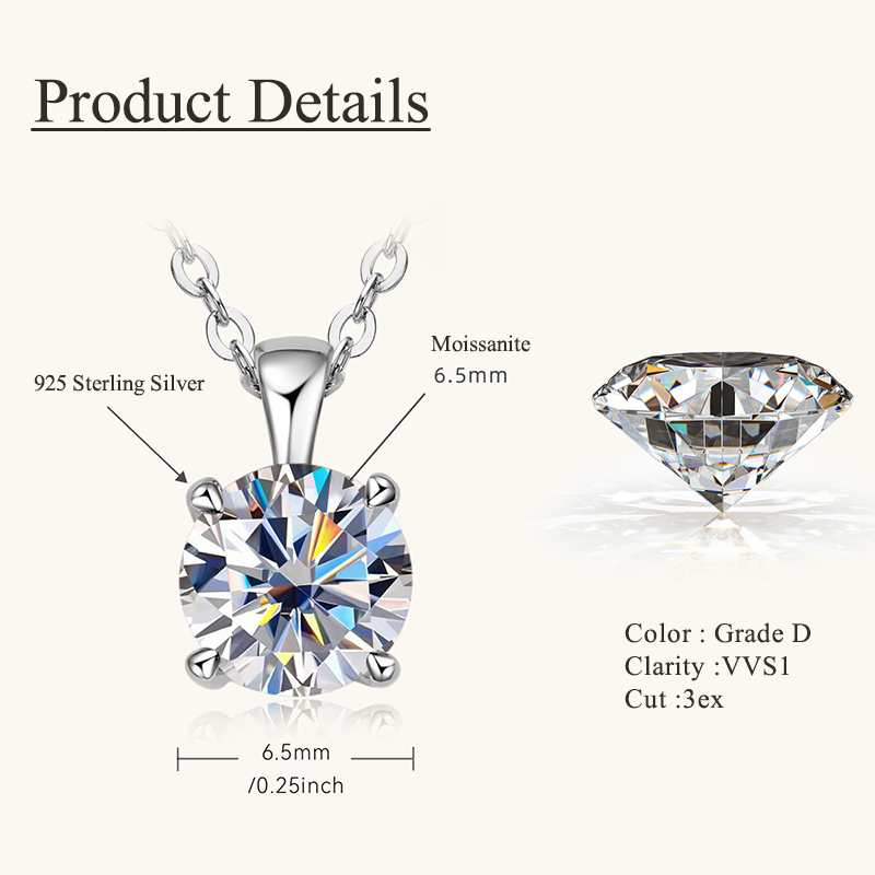 The moissanite pendant necklace is crafted in 925 sterling silver18K white gold plated with fine jewelry craft.