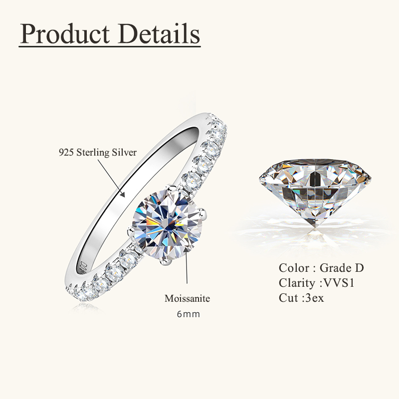 The silver moissanite ring is crafted in 925 sterling silver18K white gold plated with fine jewelry craft.