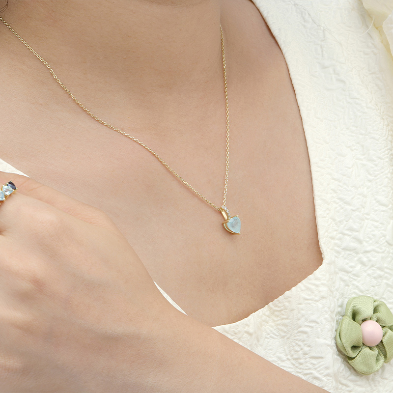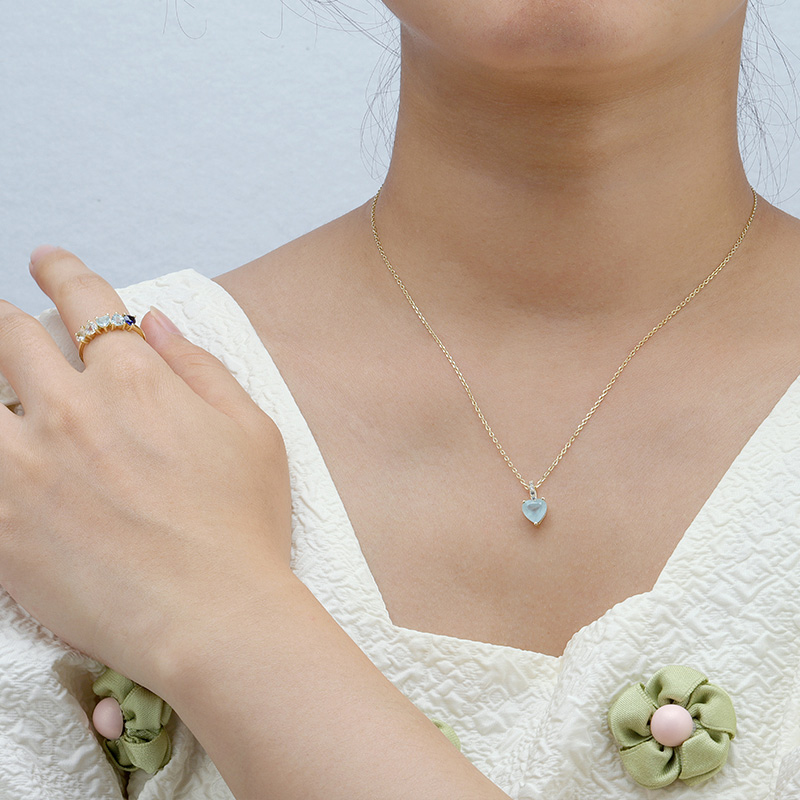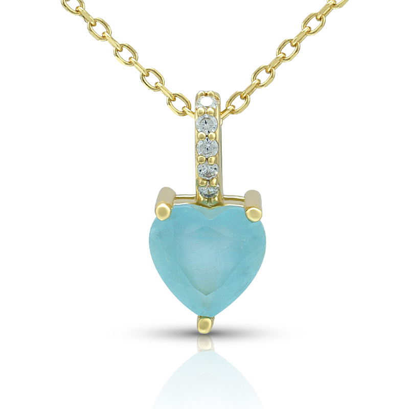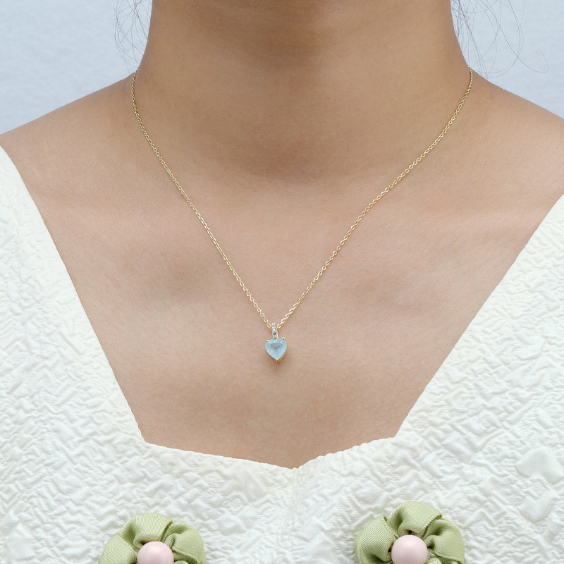 The Aquamarine Heart Necklace is crafted in 925 sterling silver gold plated with fine jewelry craft.