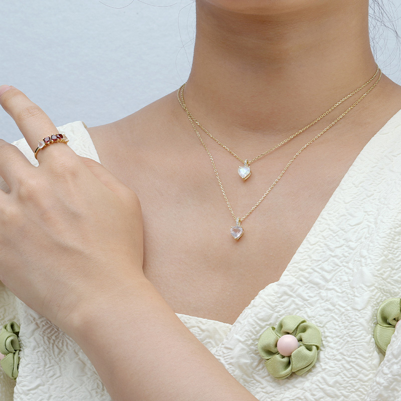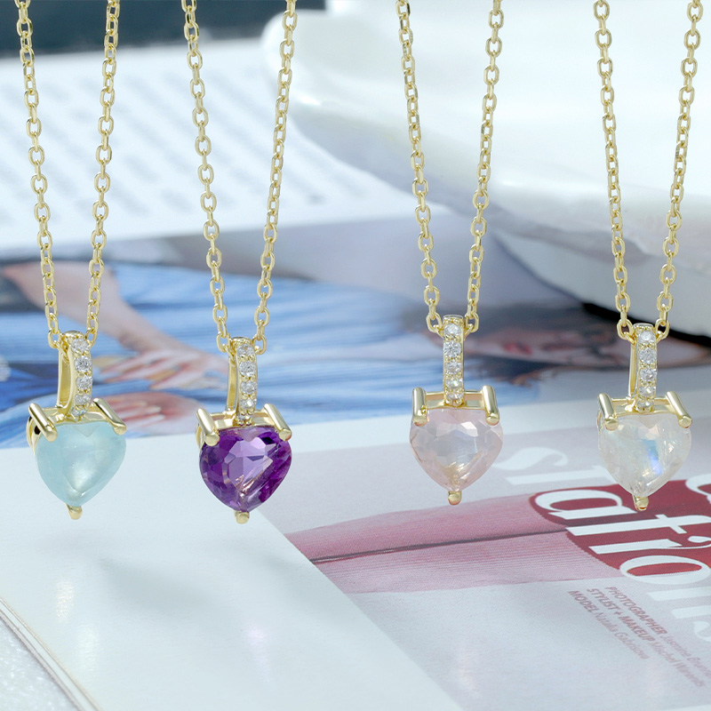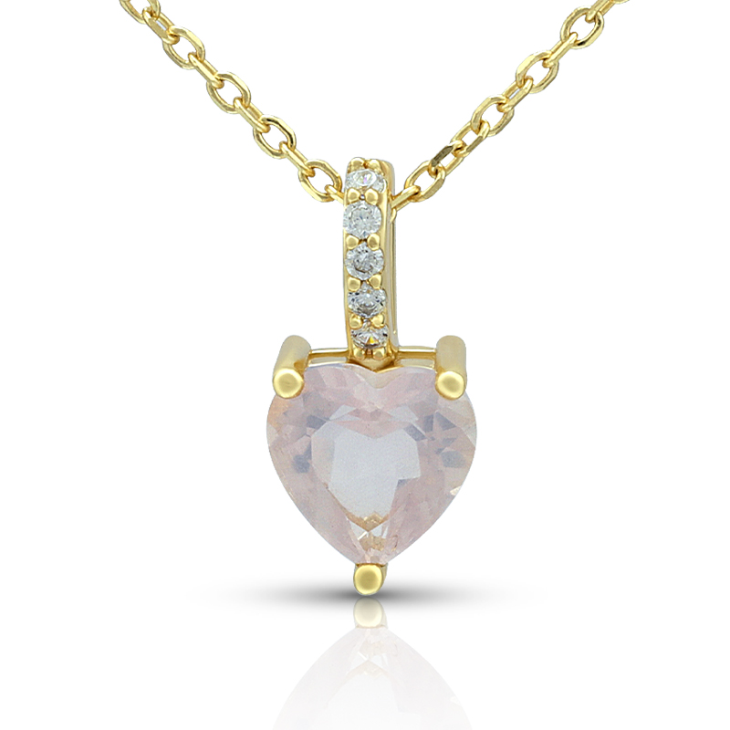 The Rose Quartz Heart Necklace is crafted in 925 sterling silver gold plated with fine jewelry craft.