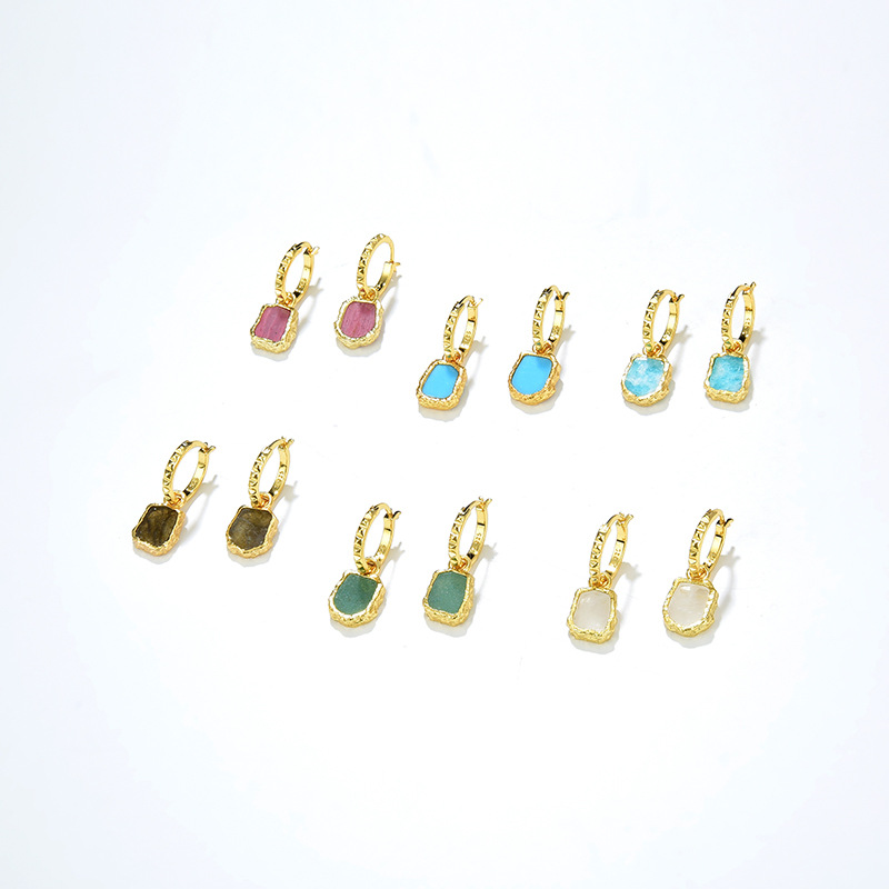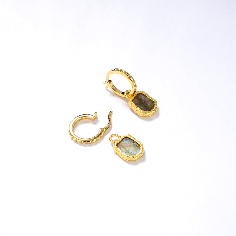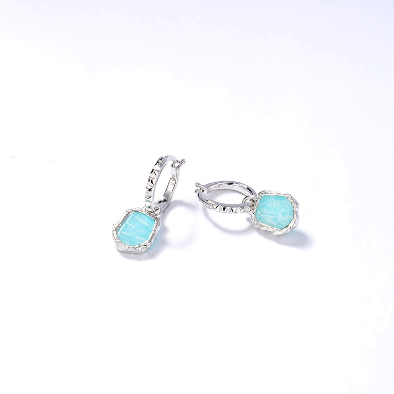 The amazonite hoop earrings are crafted in 925 sterling silver 18k yellow/white gold plated with fine jewelry craft.