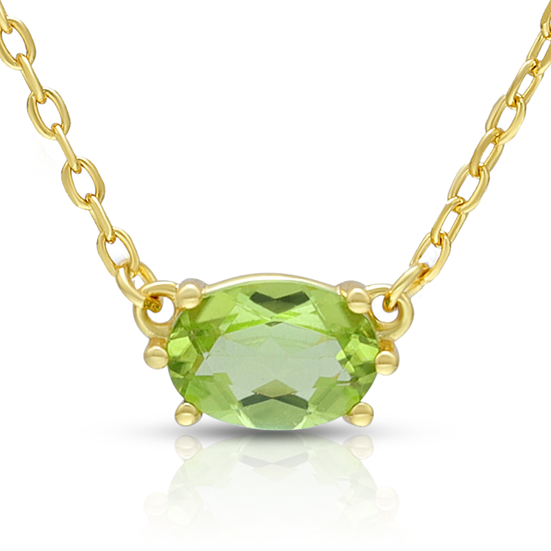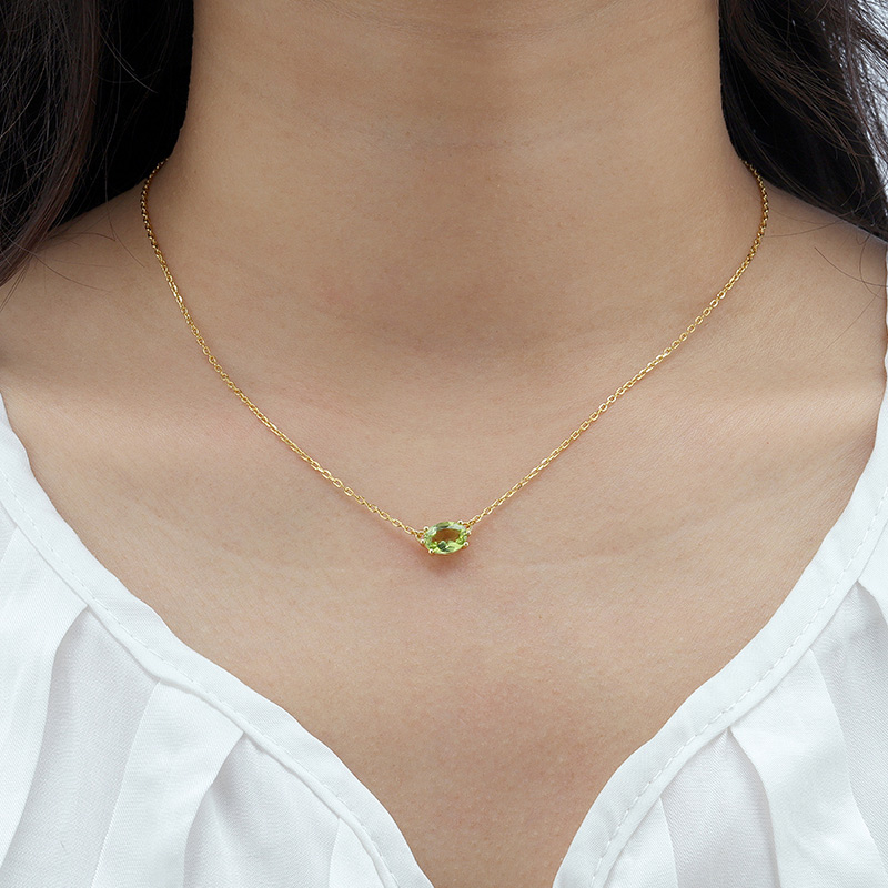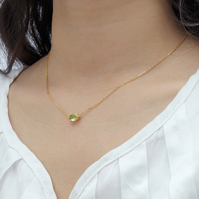 The August Peridot Birthstone Necklace is crafted in 925 sterling silver gold plated with fine jewelry craft.
