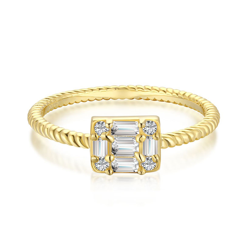 The baguette cluster engagement ring is crafted in 925 sterling silver 14k yellow/white gold plated with fine jewelry craft.