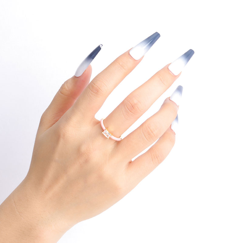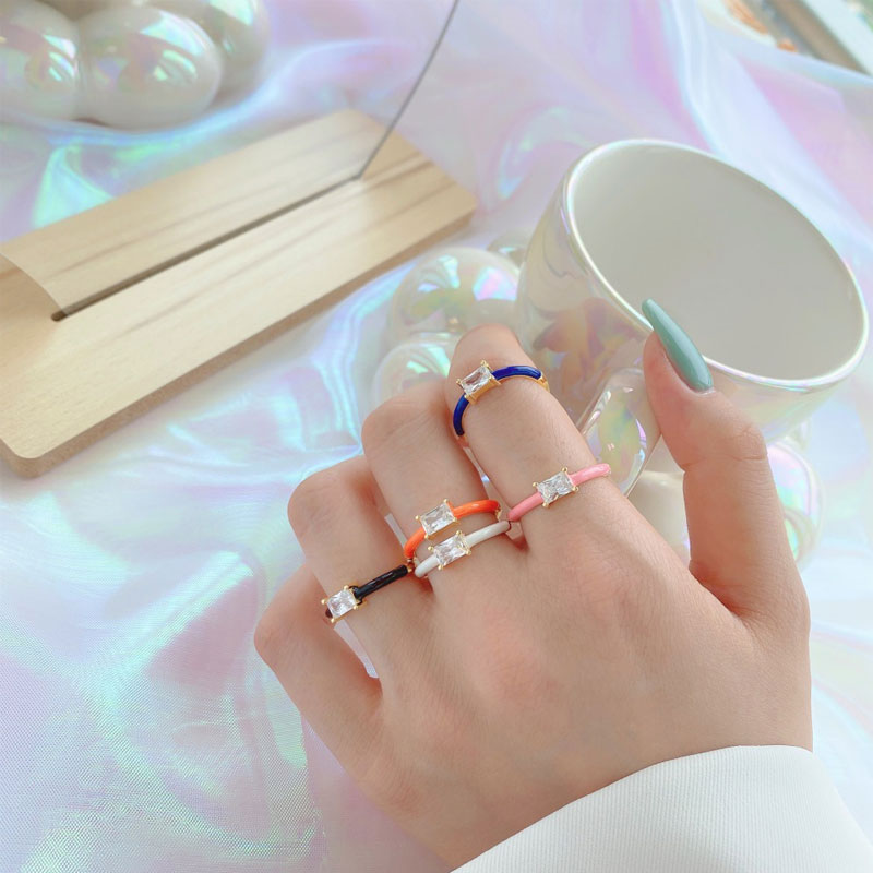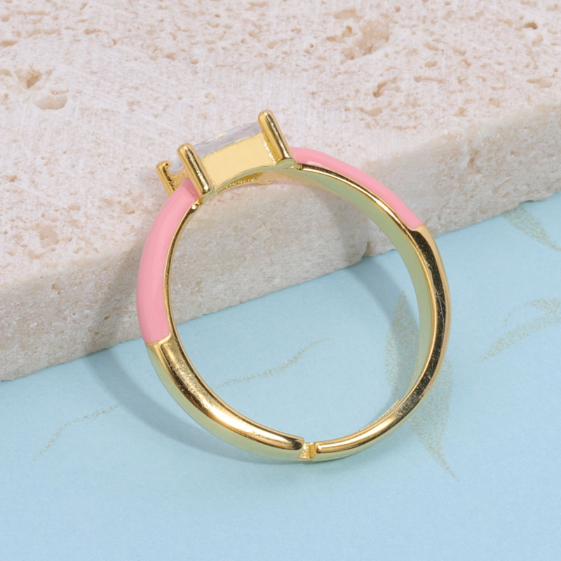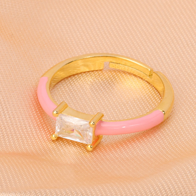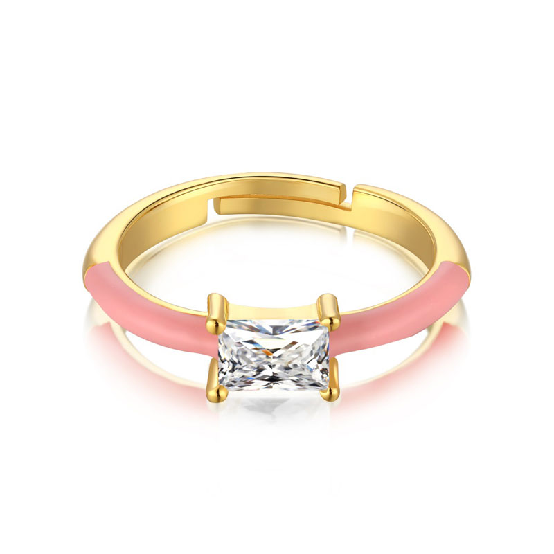 This ring is adjustable and pink enamel can also be made in other colors such as white, blue, black, orange, etc. The stone size: 4mm*6mm, baguette shape.