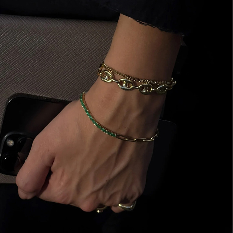 The Half Paperclip Half Tennis Bracelet is crafted in 925 sterling silver gold plated with fine jewelry craft.