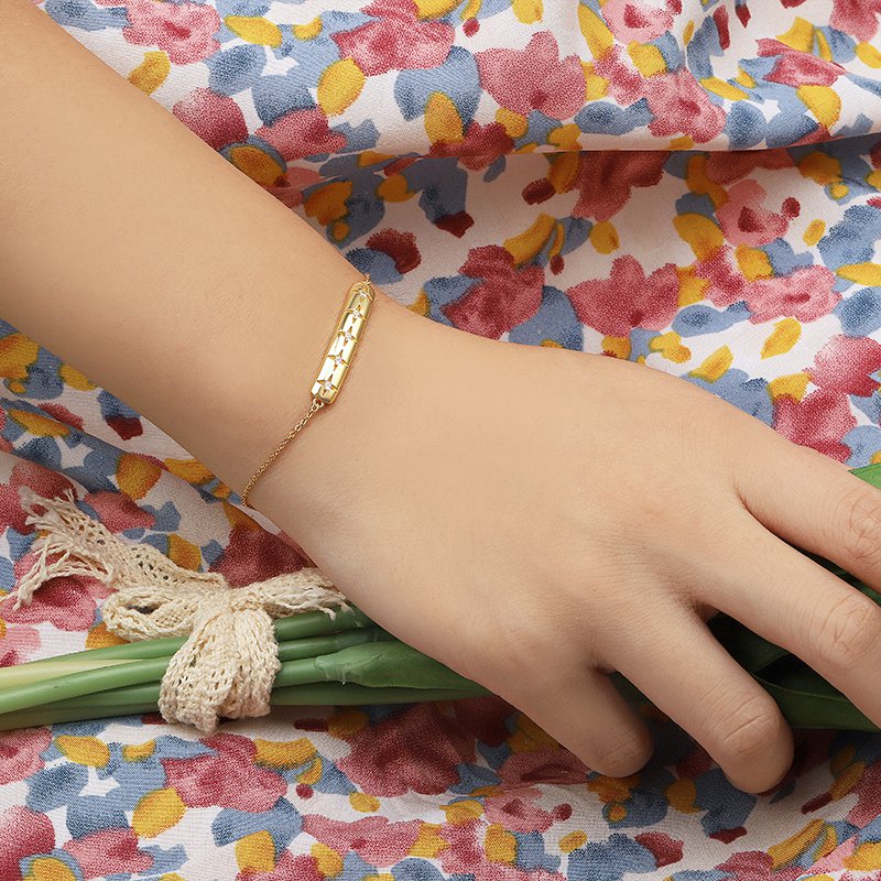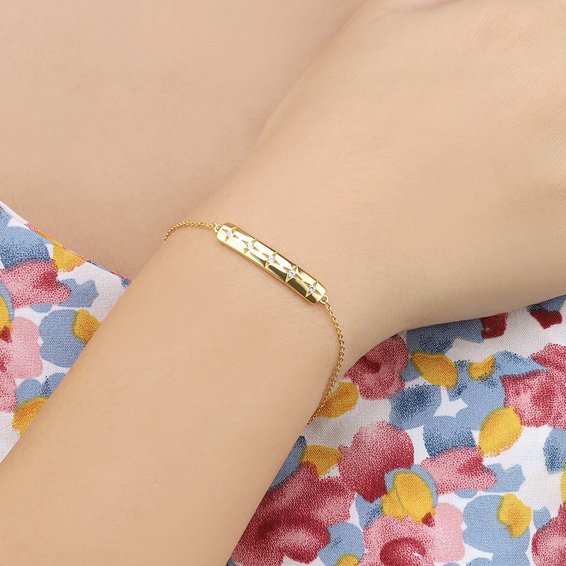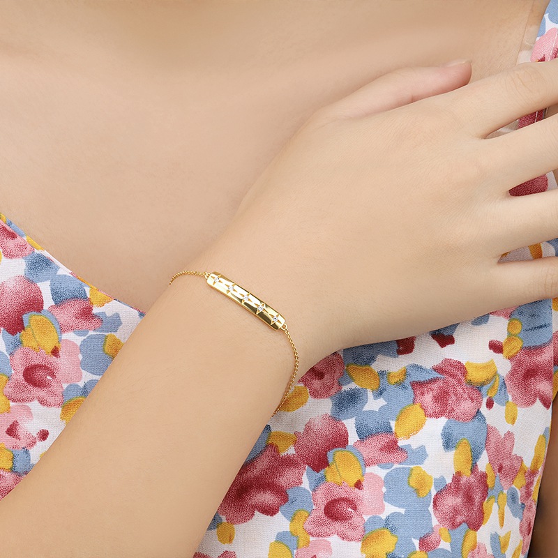 The bar chain bracelet is crafted in 925 sterling silver real gold plated with fine jewelry craft.