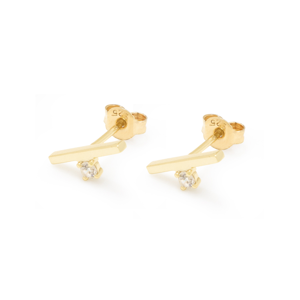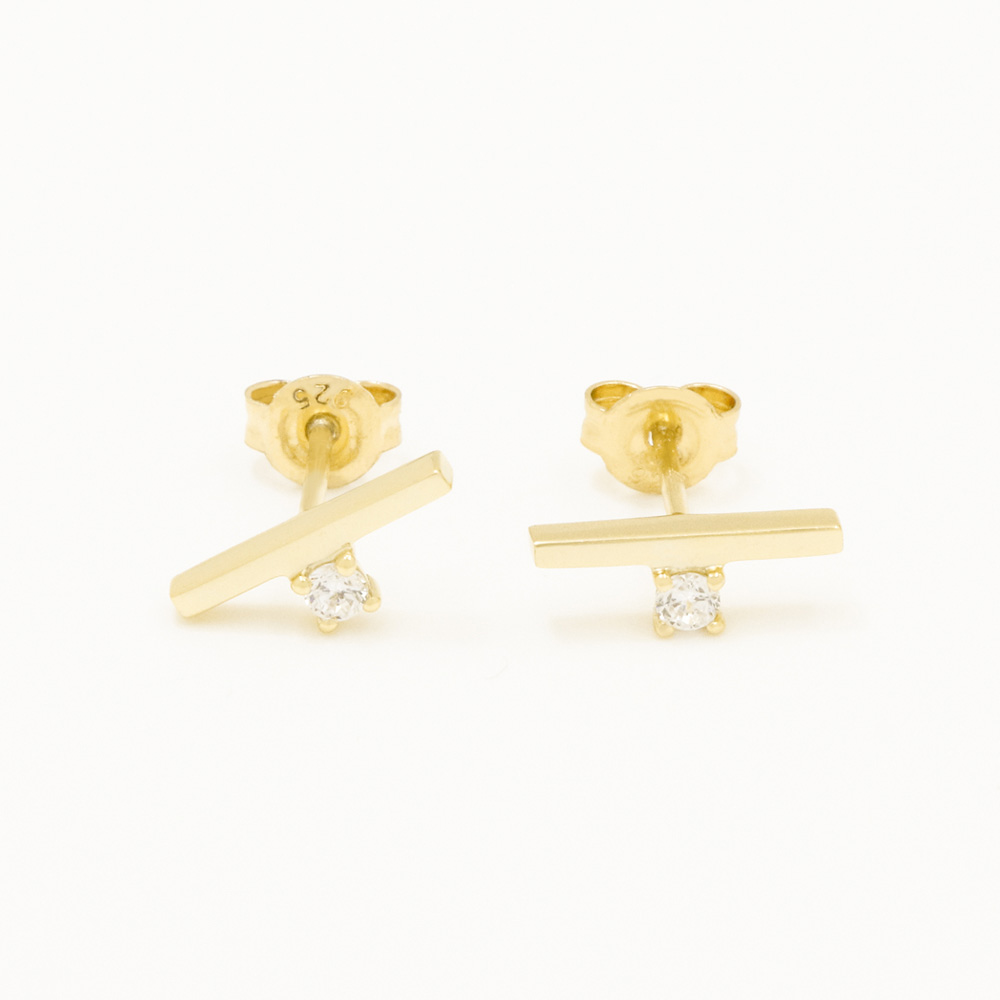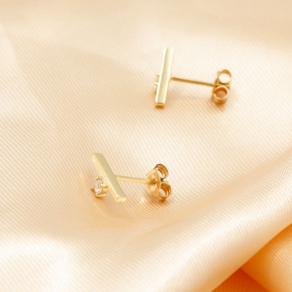 14K/18K YellowBar Cubic Zirconia Earrings Stud 18K Yellow Gold Plated for Girls