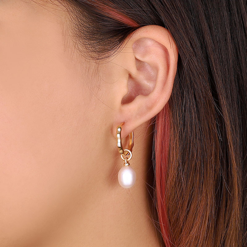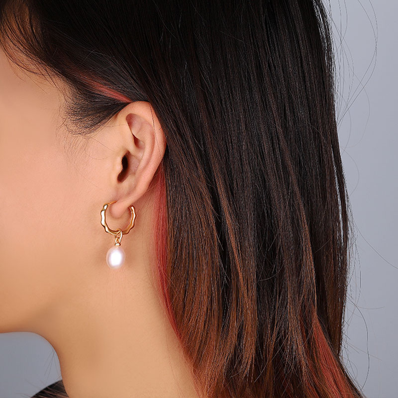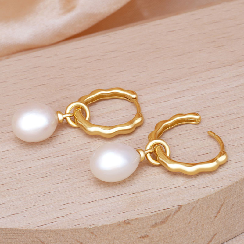 The baroque pearl hoops are crafted in 925 sterling silver real 18K gold plated with fine jewelry craft.