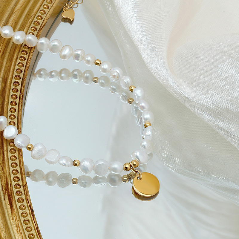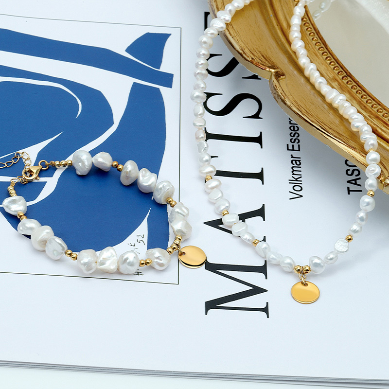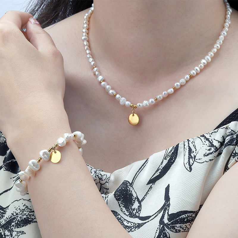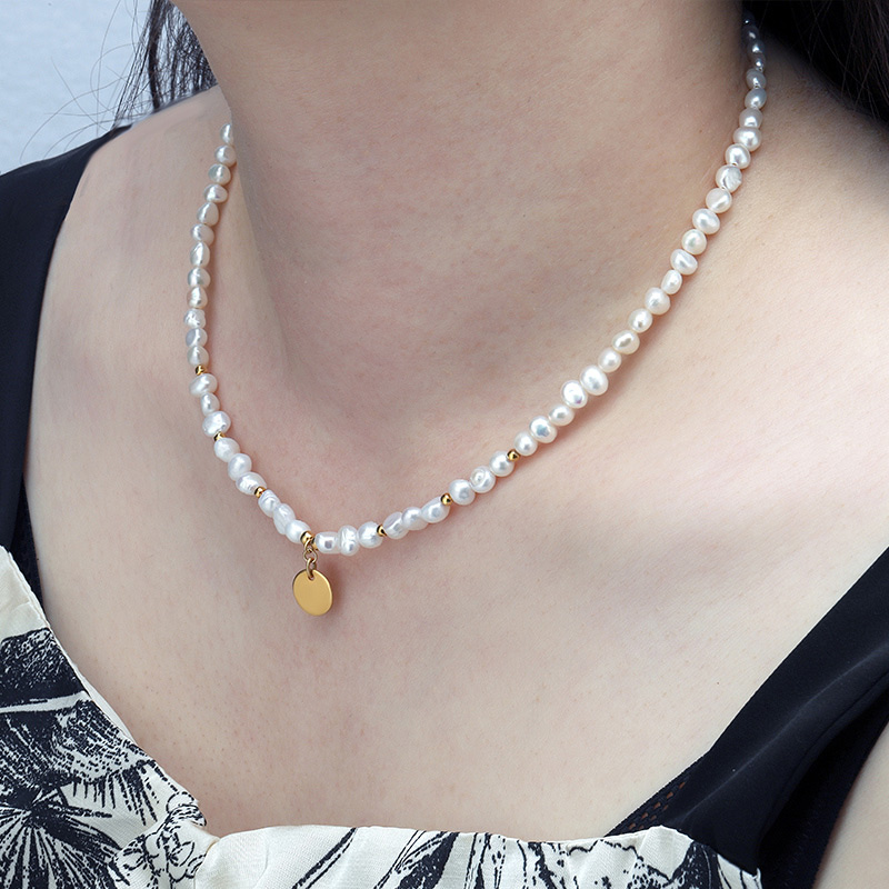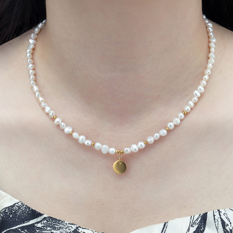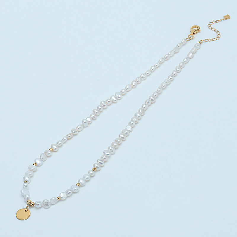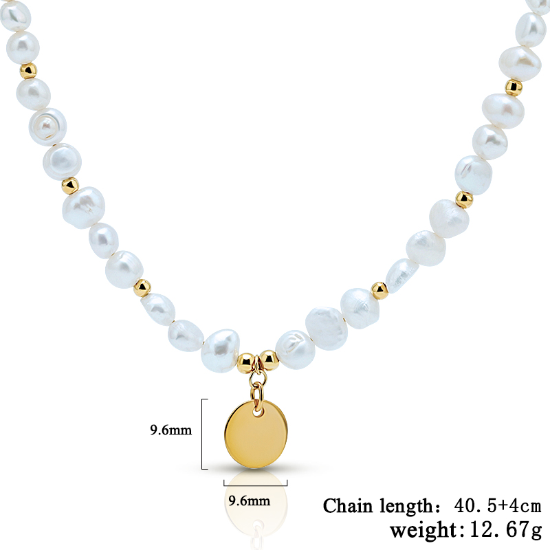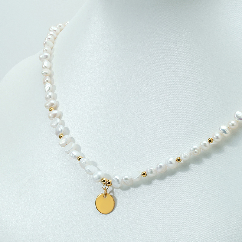 The Baroque Pearl Necklace Disc Pendant is crafted in 925 sterling silver gold plated with fine jewelry craft.
