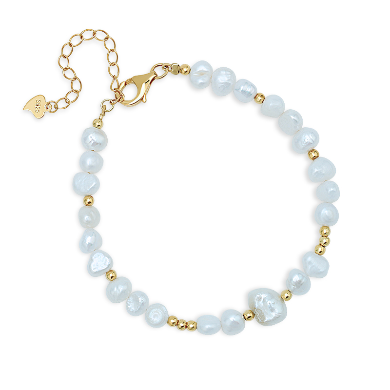 The Baroque Pearls Bracelet is crafted in 925 sterling silver gold plated with fine jewelry craft.