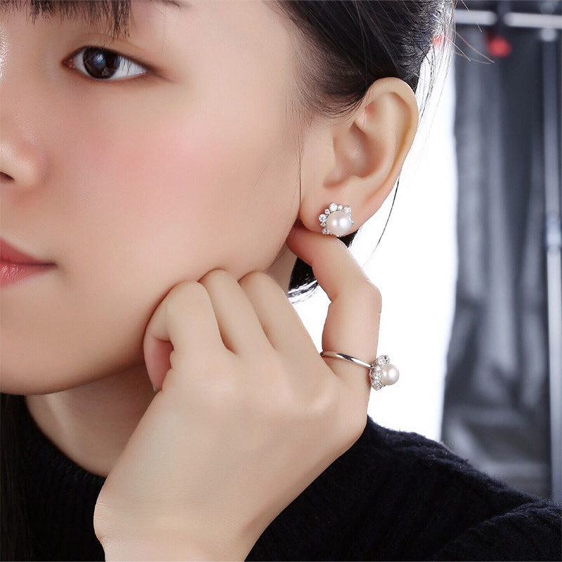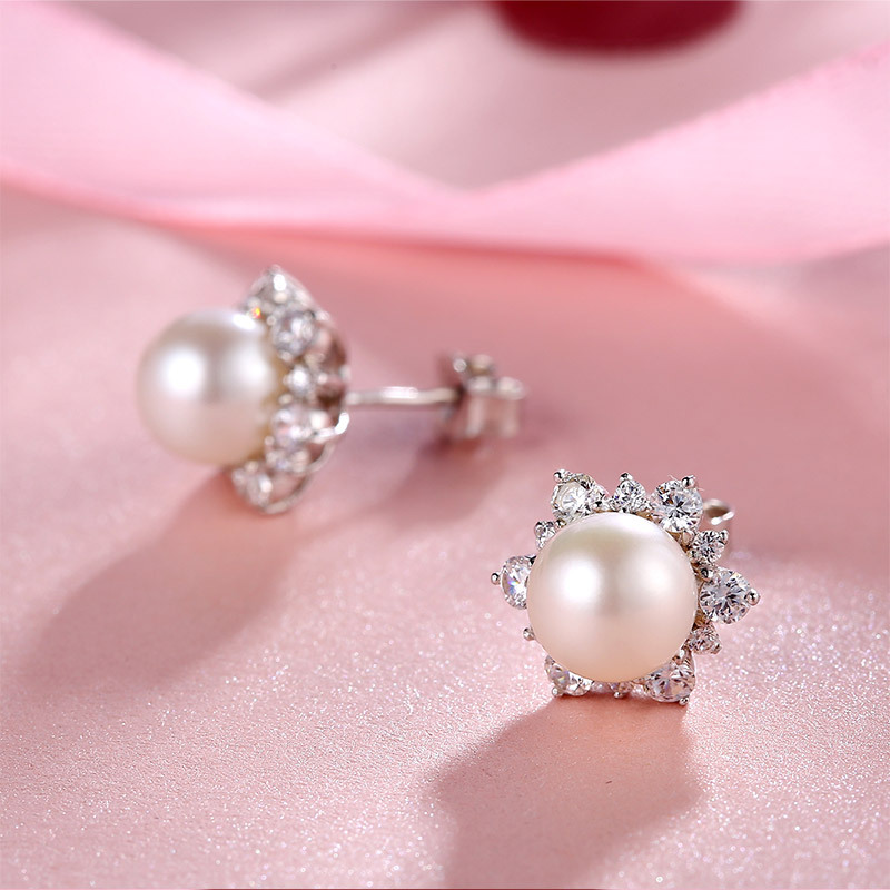This beautiful stud earrings is pink freshwater pearl design with prong setting AAA CZ stone around it.It is very beautiful and attracting.