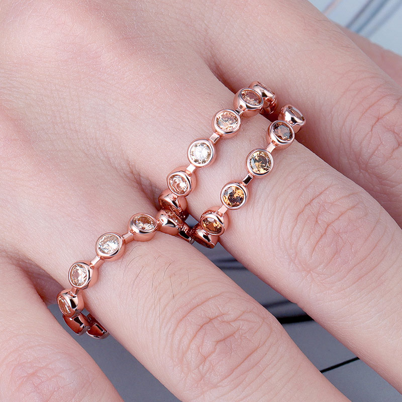 Bezel Champagne Cubic Zirconia Ring