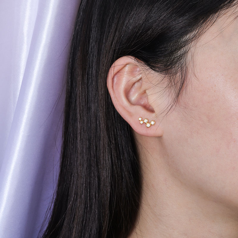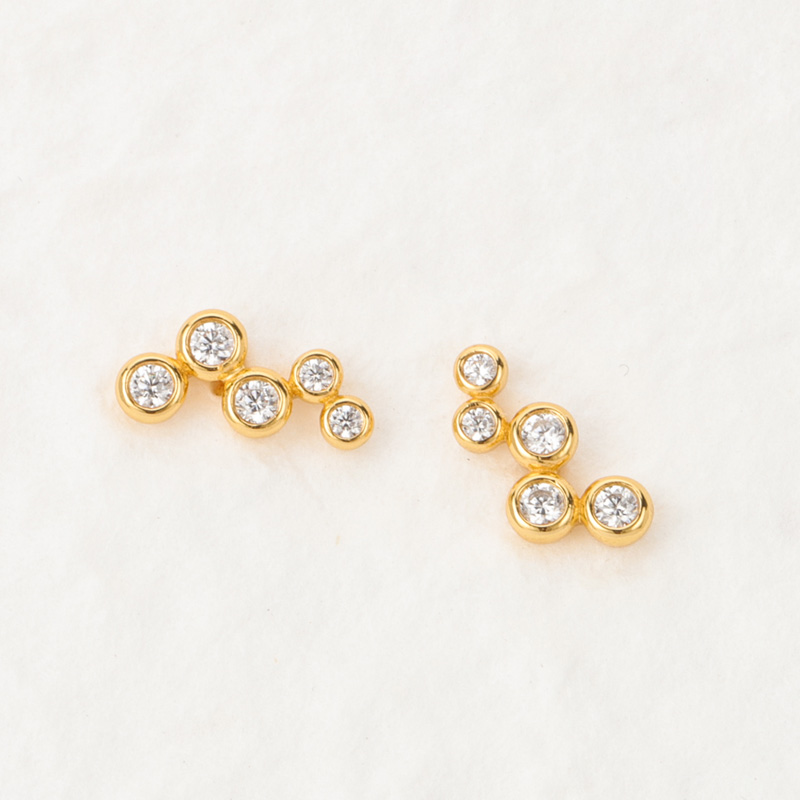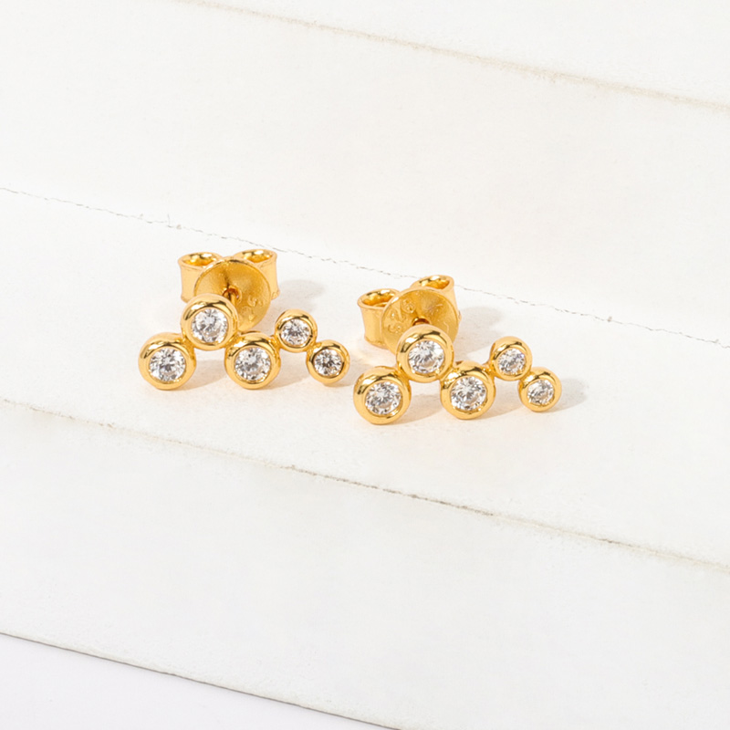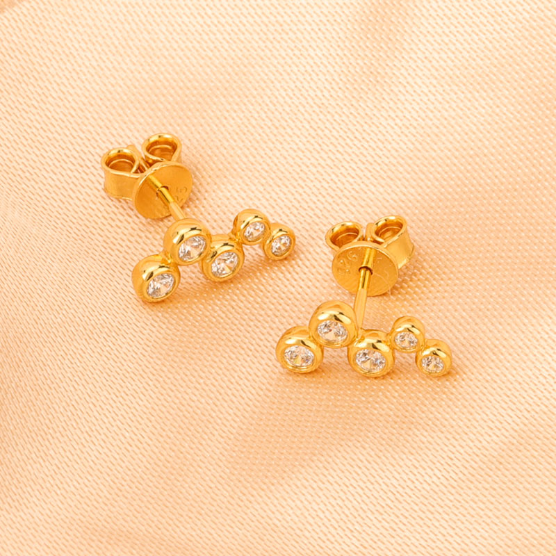 The zircon studs are crafted in 925 sterling silver 18k yellow gold plated with fine jewelry craft.