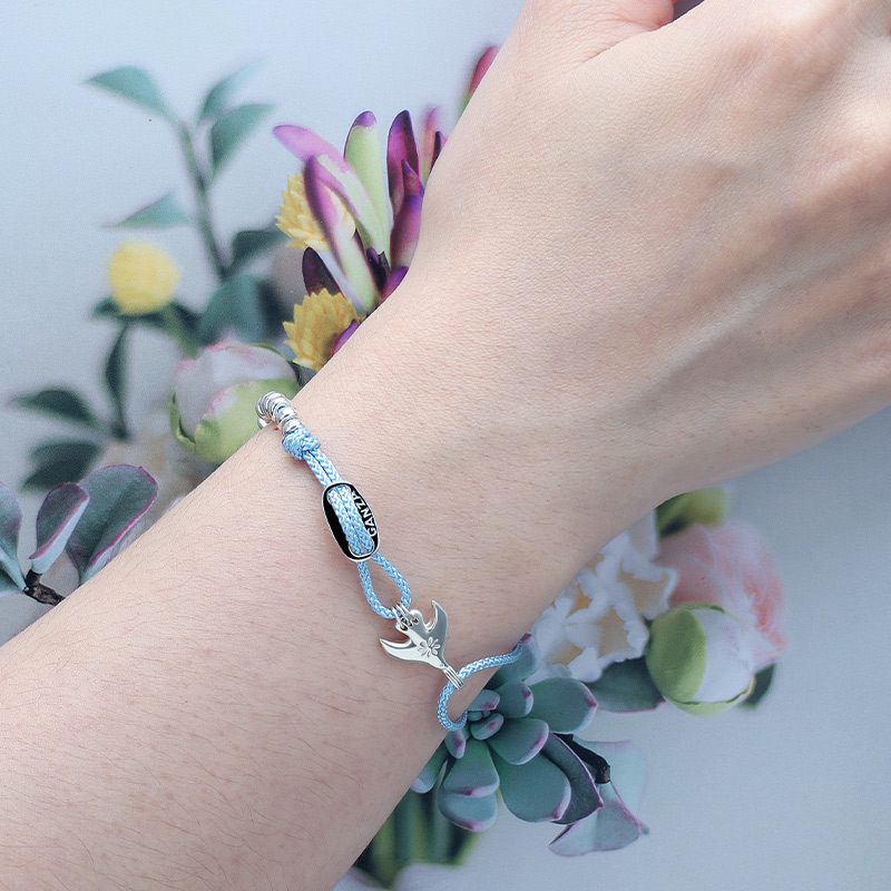 The Bird Tag Cord Bracelet is crafted in 925 sterling silver 18k gold plated with fine jewelry craft.