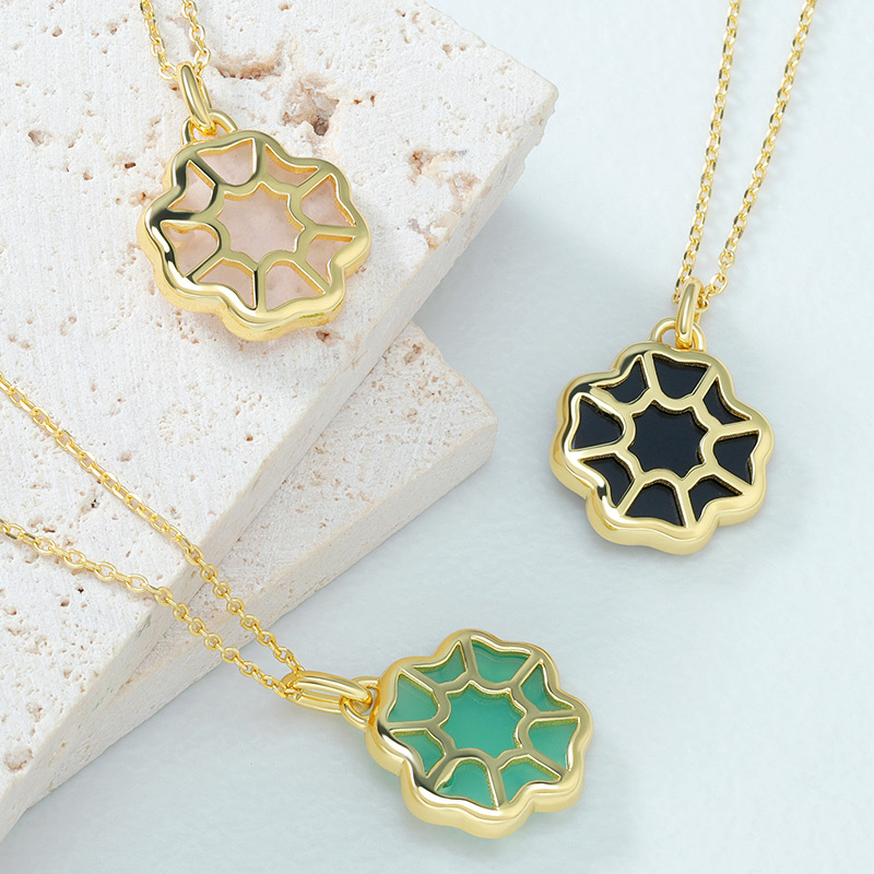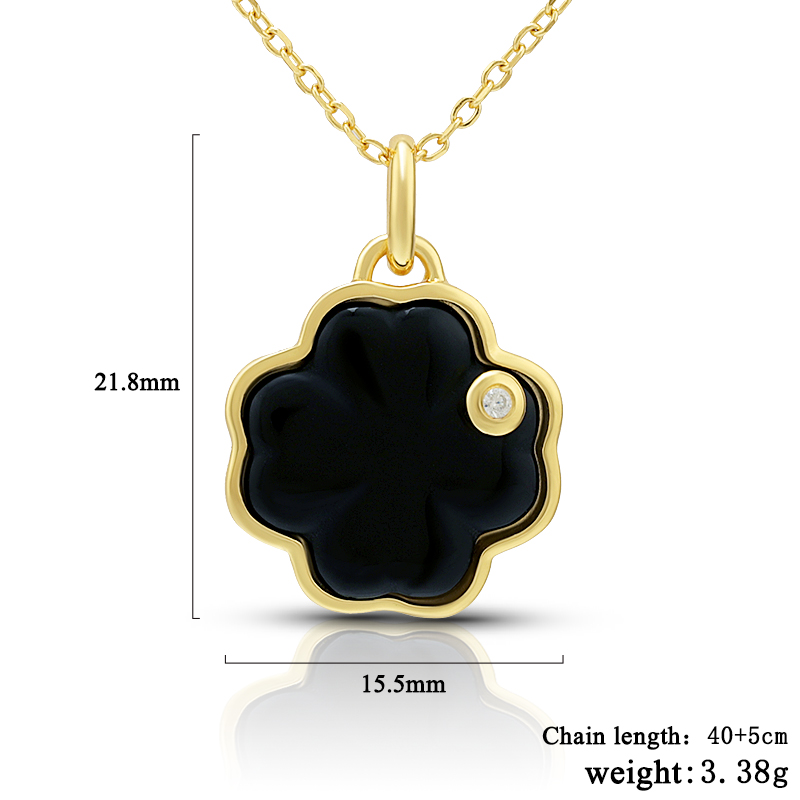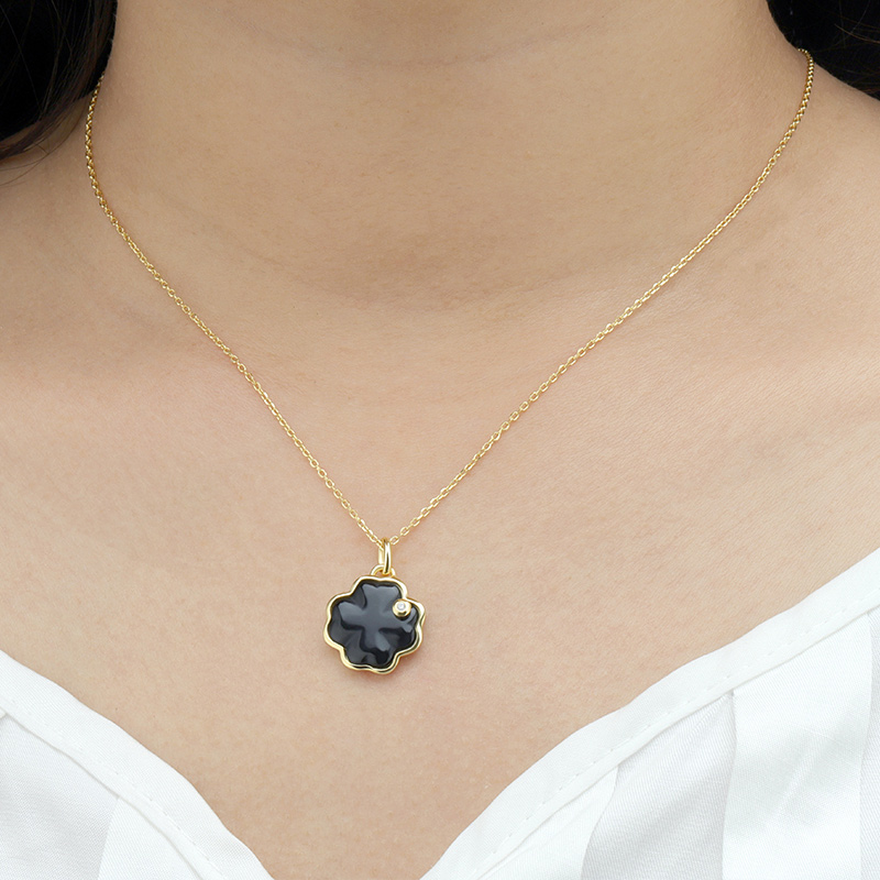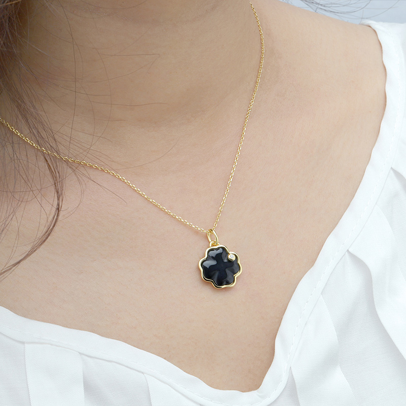 The Black Agate Four Leaf Clover Pendant Necklace is crafted in 925 sterling silver gold plated with fine jewelry craft.