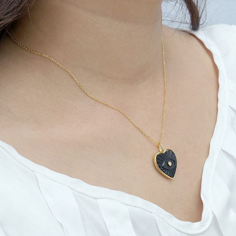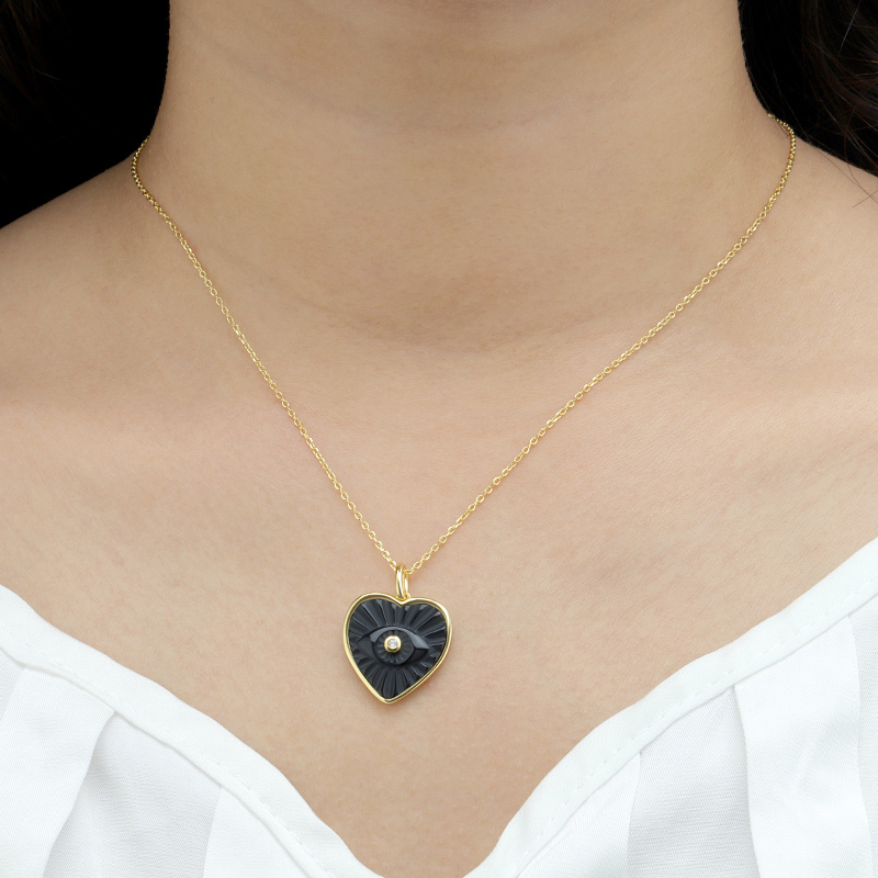 The Heart Shaped Evil Eye Necklace is crafted in 925 sterling silver gold plated with fine jewelry craft.