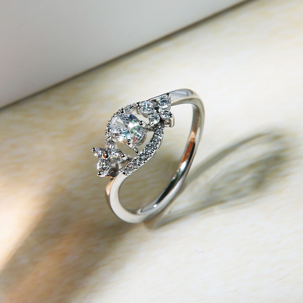 Unique design shape cluster silver ring with bling and high quality AAAA CZ stones. The best choice for engagement ring and wedding ring.