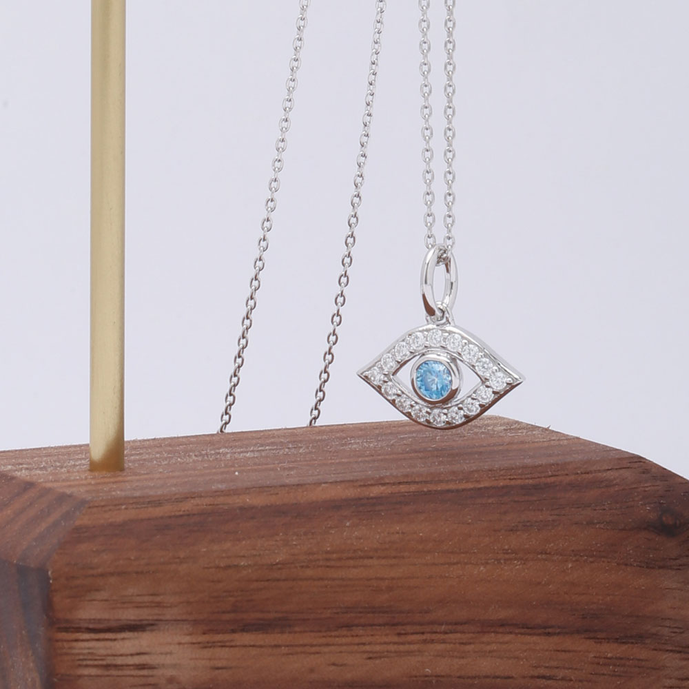 This blue evil eye necklace features a beautiful blue eye made of round CZ stones. This pendant necklace makes a great gift anyone in need of a little luck. Chains are smooth and beautiful. We custom plating color and thickness.