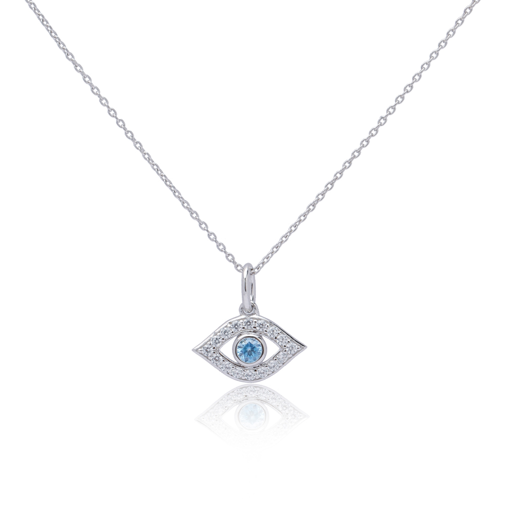 18k Yellow/WhiteBlue Evil Eye Necklace Zircons Sterling Silver 18K Gold Plated