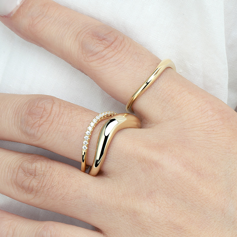 The Bold Wave Ring is crafted in 925 sterling silver 14k gold plated with fine jewelry craft.