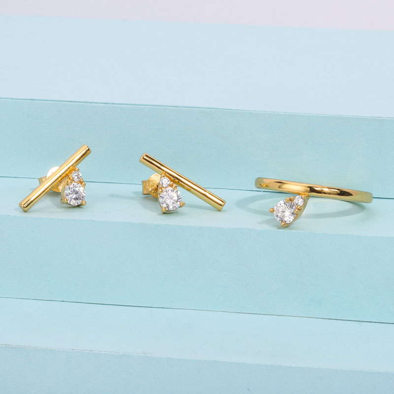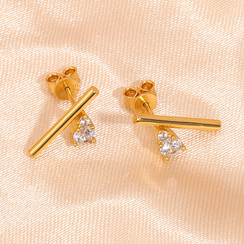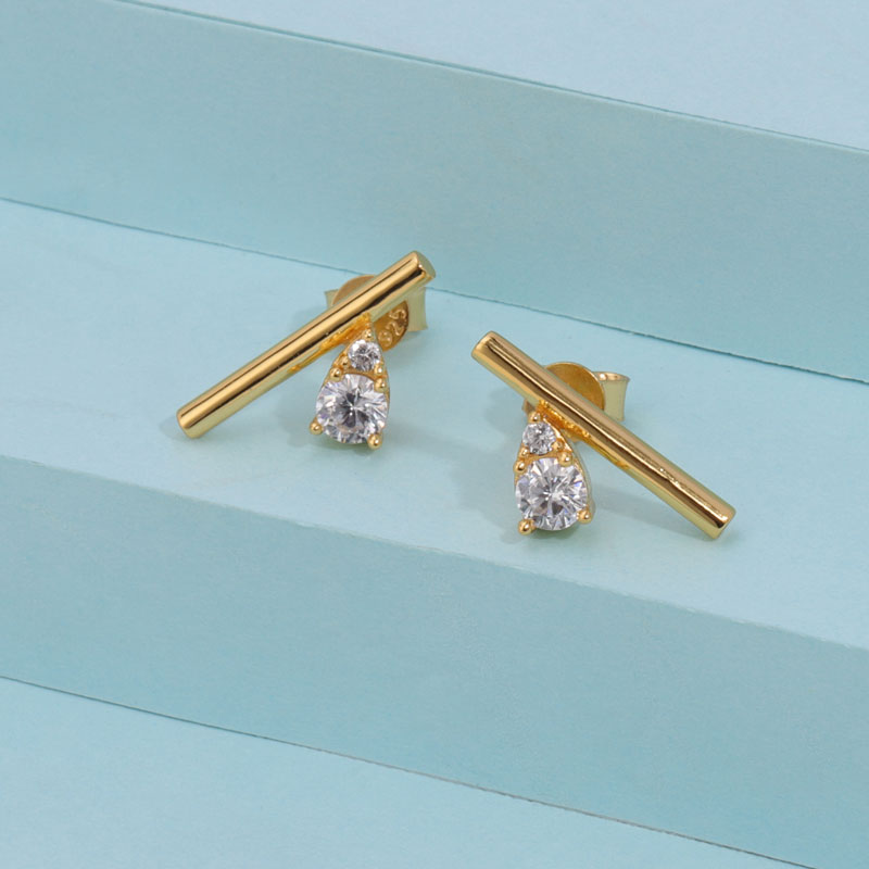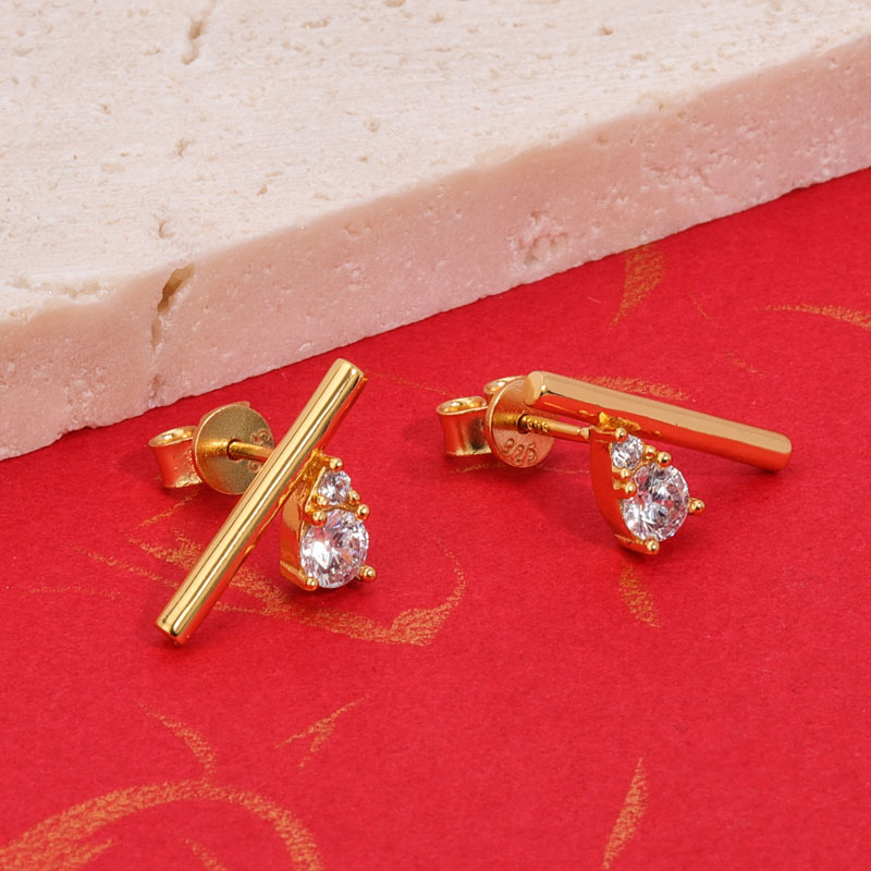 The bar studs are crafted in 925 sterling silver 18k yellow gold plated with fine jewelry craft.