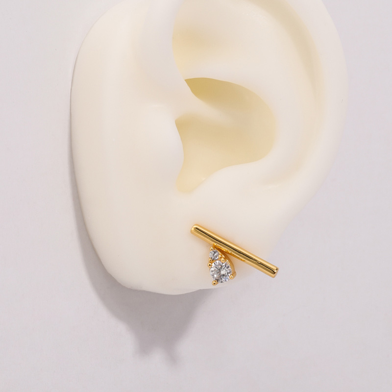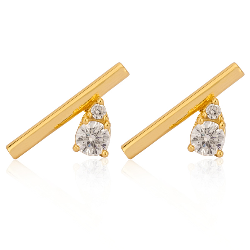 18K YellowBranch Gold Bar Stud Earring Cubic Zircon