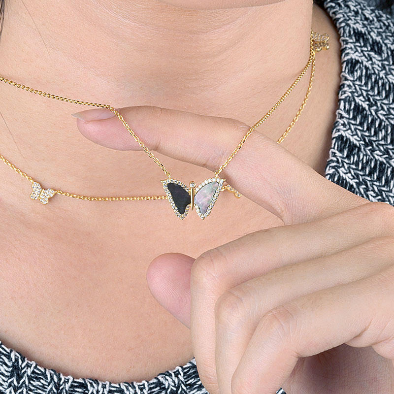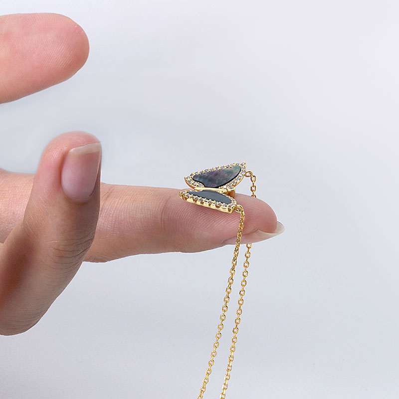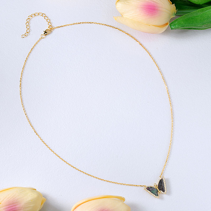 The abalone shell necklace is crafted in 925 sterling silver real gold plated with fine jewelry craft.