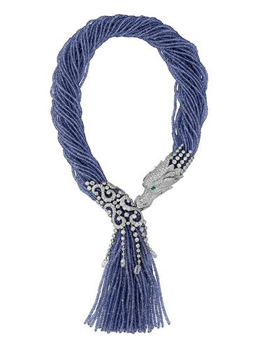 The dragon is one of the four spiritual totems in Chinese culture and the symbol of mysterious Oriental culture. Cartier made the dragon-shaped diamond tanzanite platinum necklace with extraordinary originality and perfect craft. In addition, the design style of tassel also has Oriental flavor.