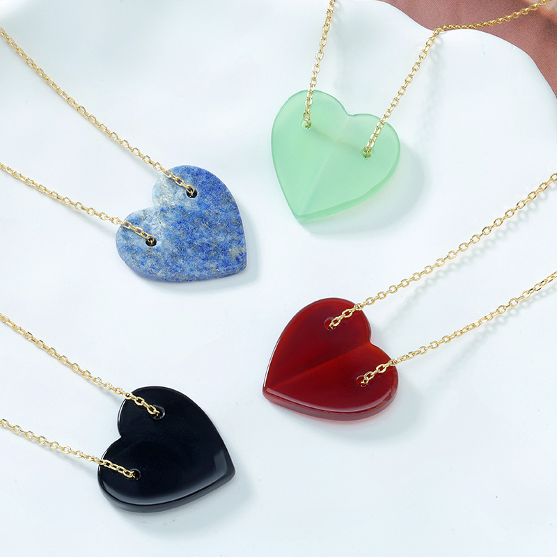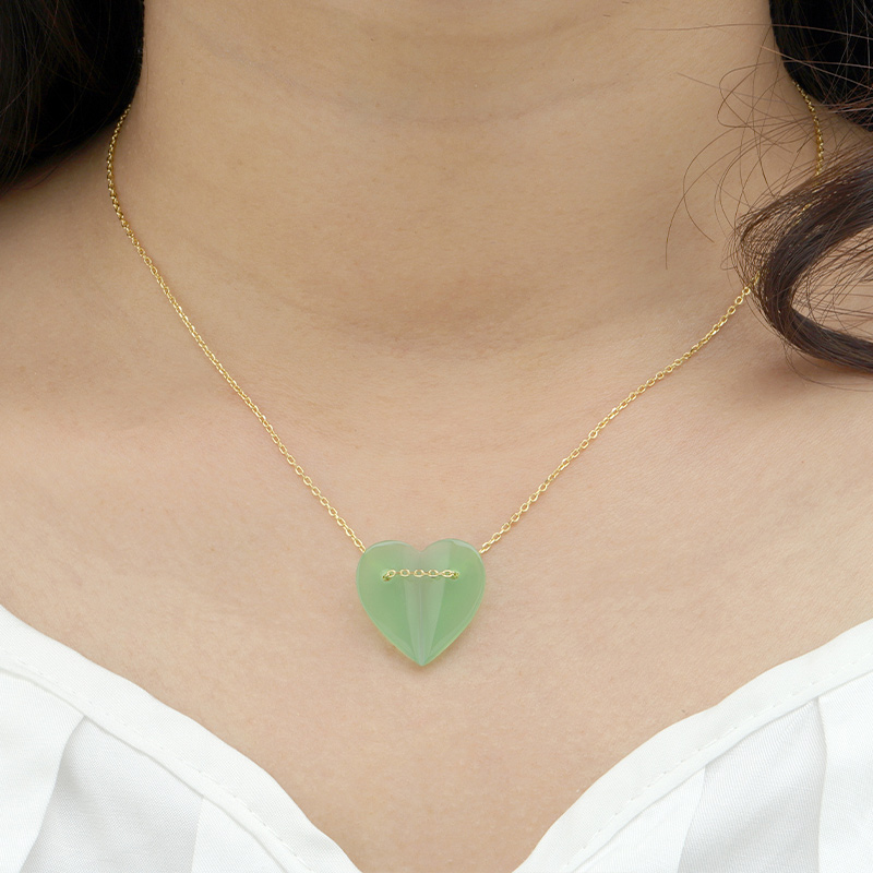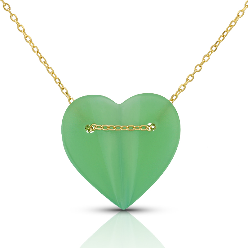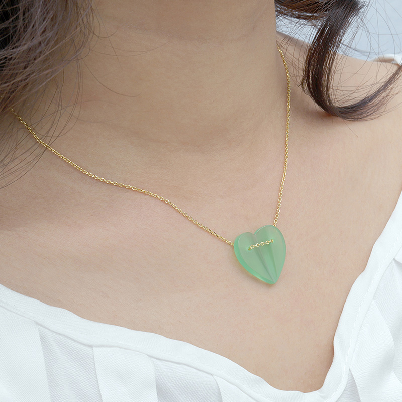 The Chrysoprase Folded Heart Necklace is crafted in 925 sterling silver gold plated with fine jewelry craft.