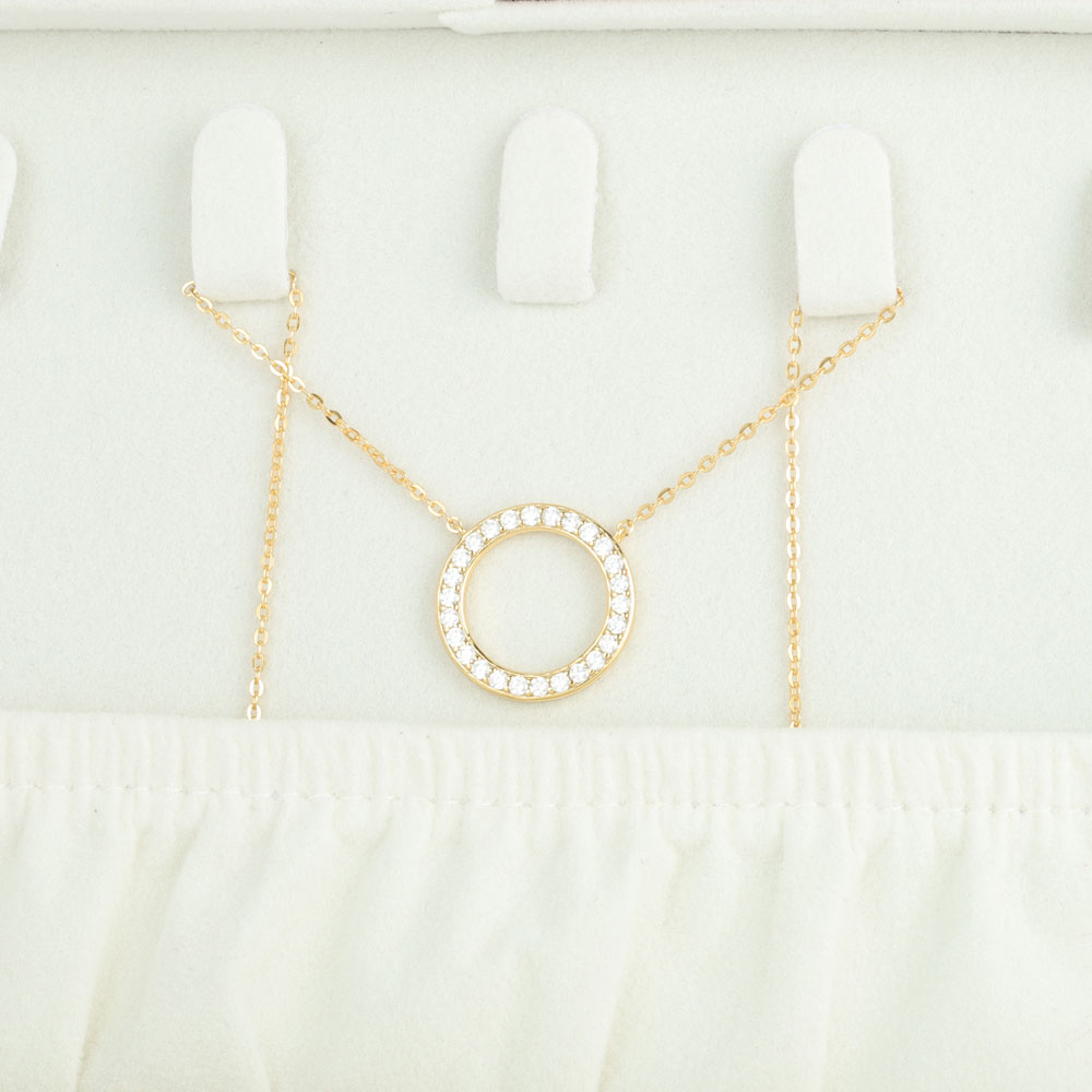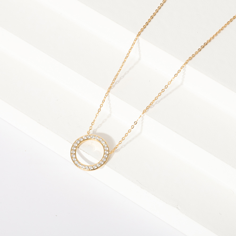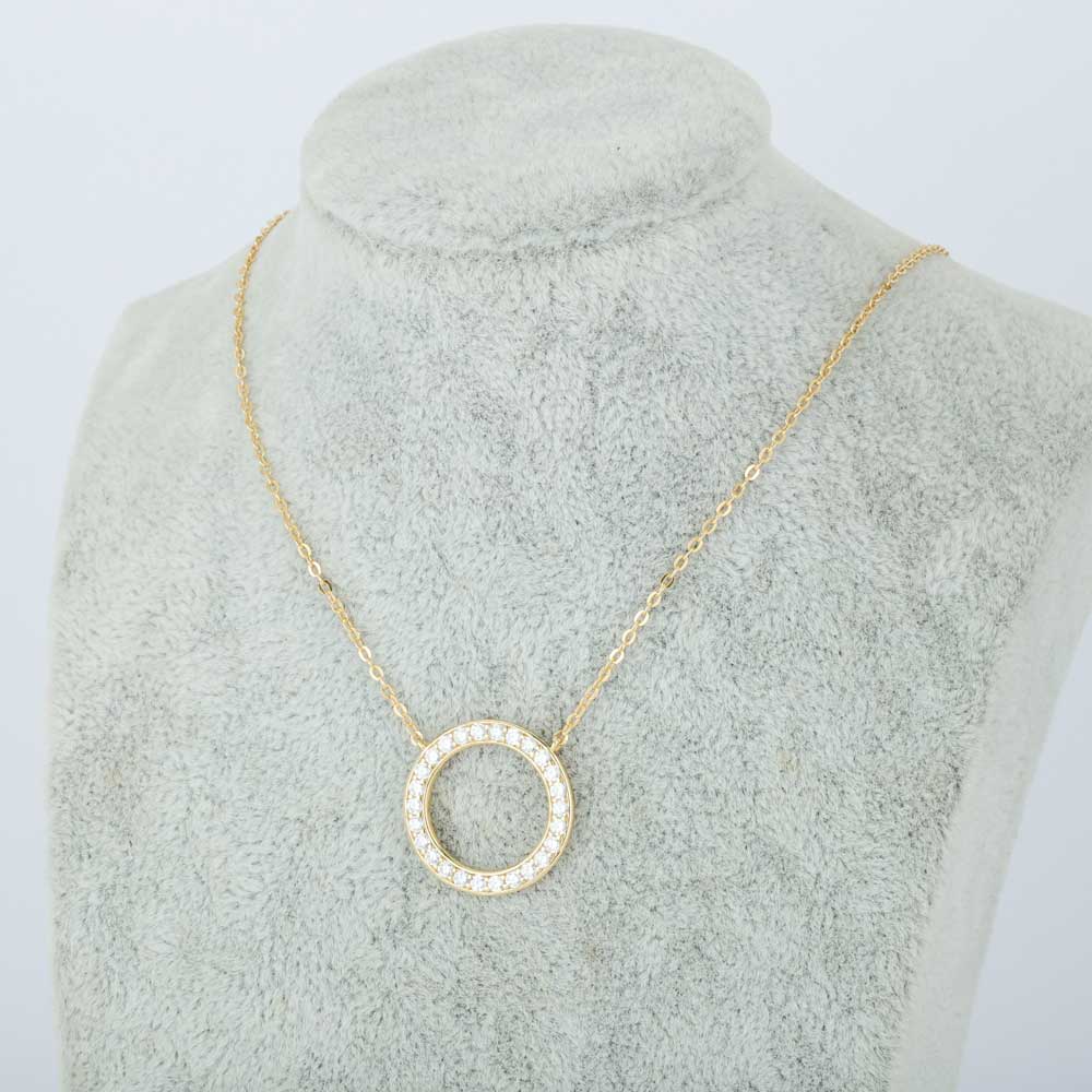 18K YellowCircle Silver Pendant Necklace Pave Set Cubic Zircon Stone Gold Plated