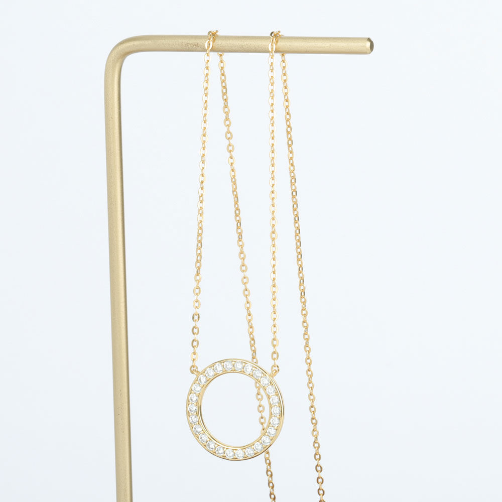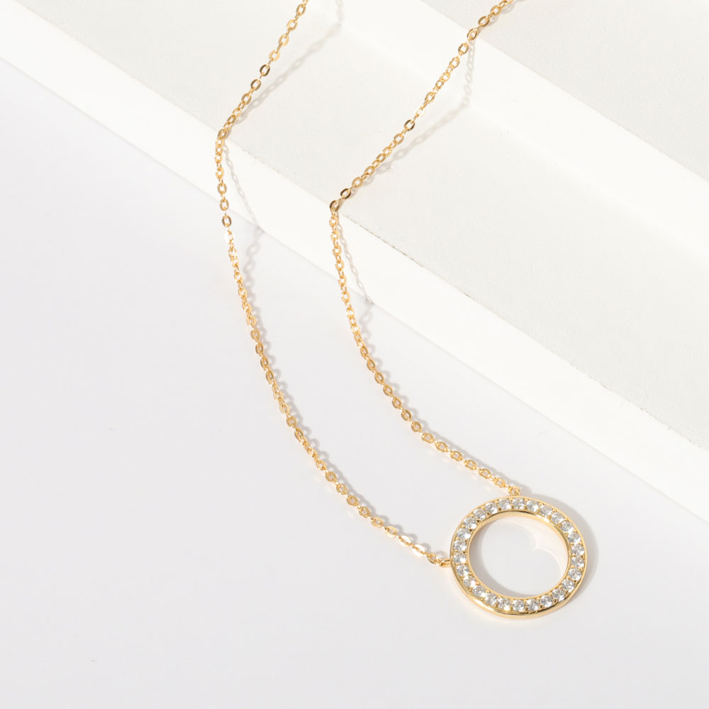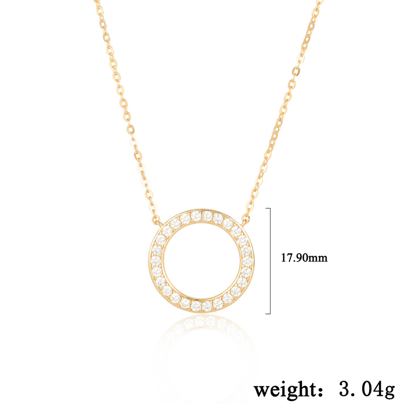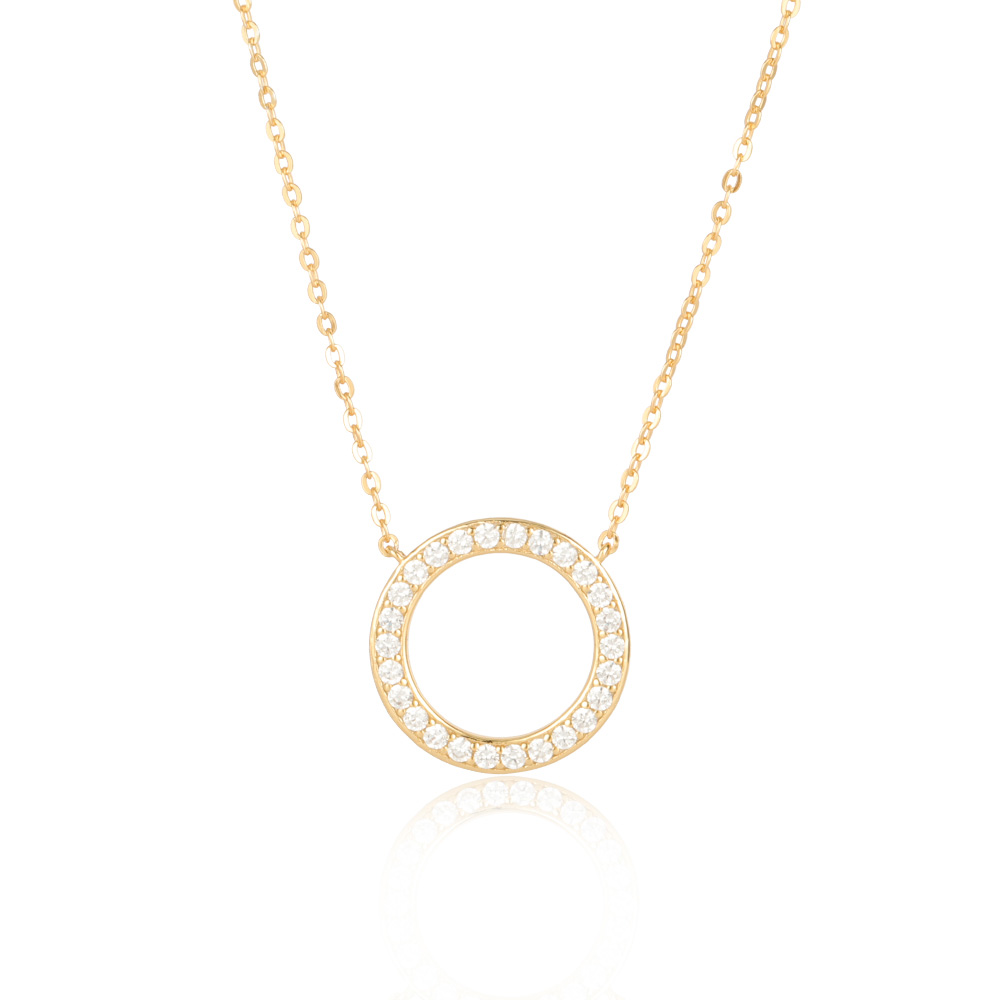18K YellowCircle Silver Pendant Necklace Pave Set Cubic Zircon Stone Gold Plated