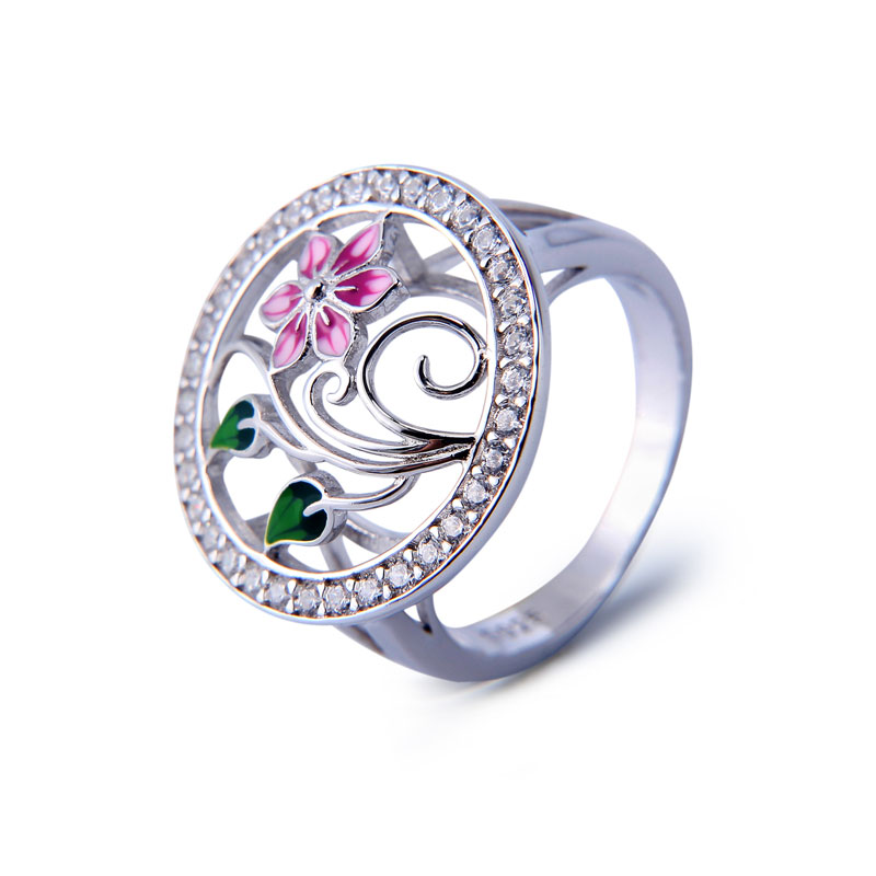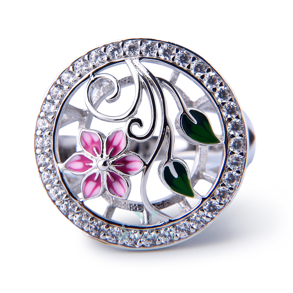 The main structure is S925 sterling silver, with graceful enamel flowers and AAAA zircon stones around.